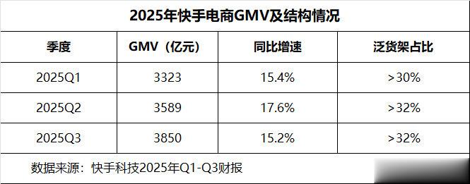 财报显示,快手电商GMV单季达3850亿元,同比增15.2%,增速显著快于公司整体收入。从增长动力来看,搜索提升尤为突出,泛货架占比持续提升,是快手最核心的增长引擎。同时,这也呼应了前文所提到的,直播收入的低速增长趋势。