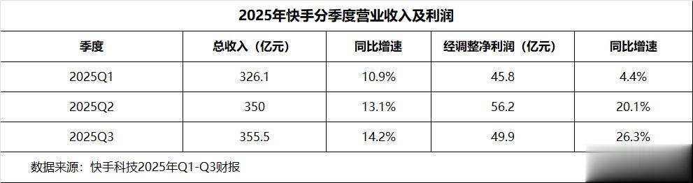 11月19日,快手公布第三季度财报:营收356亿元,同比增长14.2%,延续了今年以来双位数增长的态势;经调整净利润50亿元,同比增长26.3%,连续多季度保持盈利增长;用户规模方面,DAU达4.16亿、MAU达7.31亿,连续三个季度创下历史新高。