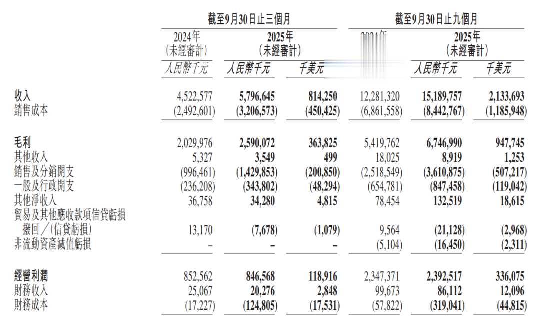 2025年Q3,集团总营收57.97亿元,同比增长28%,季度收入首次突破50亿元的大关;季度归母净利润4.41亿元,同比减少31%。2025年前三季度,集团总营收151.90亿元,同比增长24%;归母净利润13.47亿元,较上年同期的18.12亿元,减少了近5亿元。