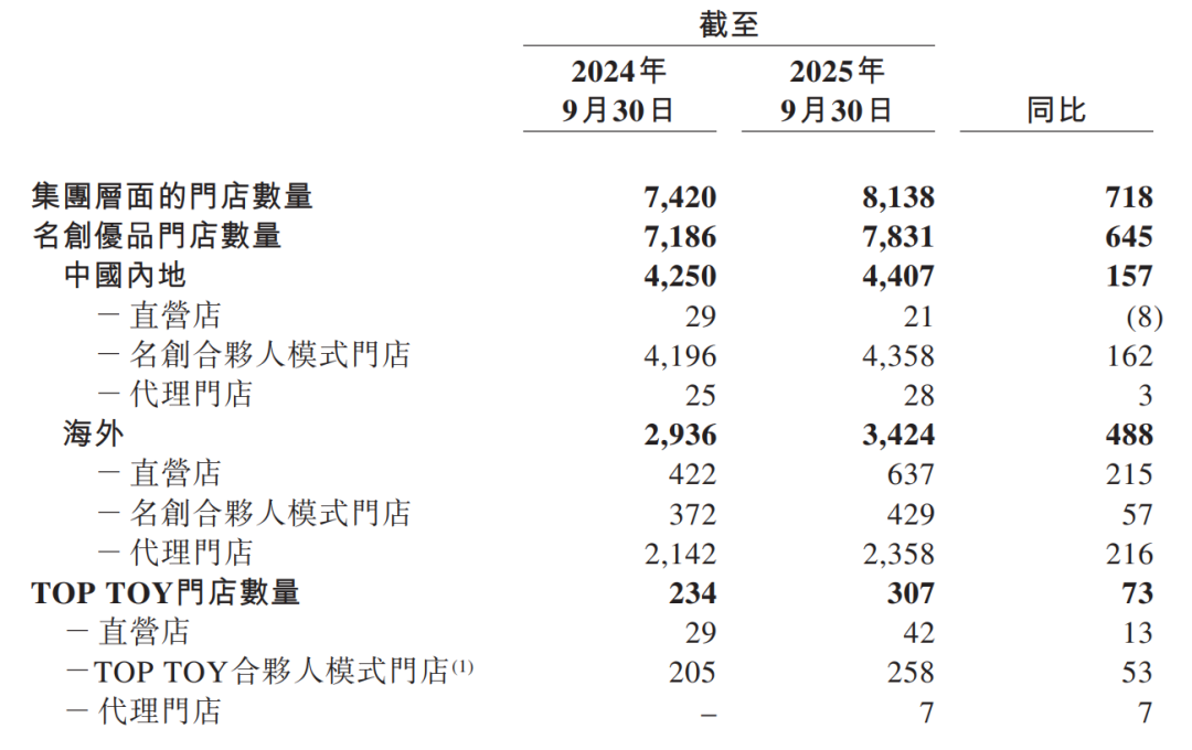 截至2025年9月30日,MINISO全球门店数量为7831家,同比净新开645家;TOPTOY门店数量为307家,同比净新开73家。