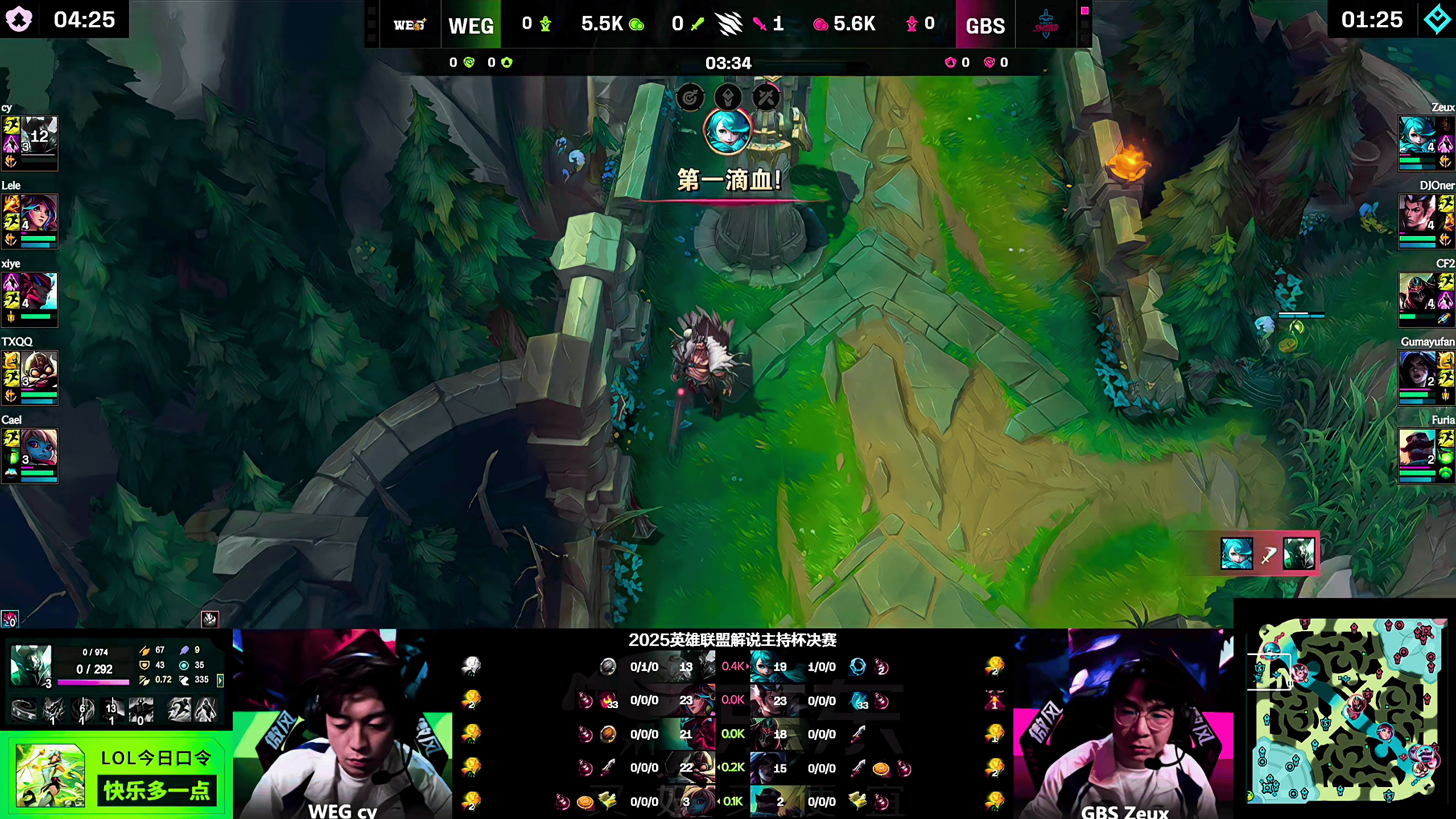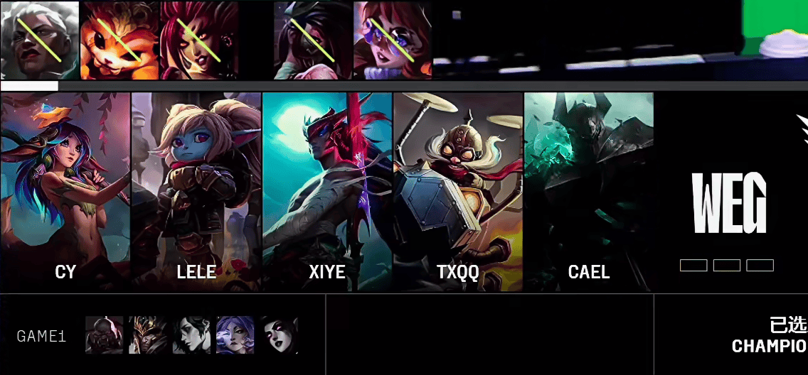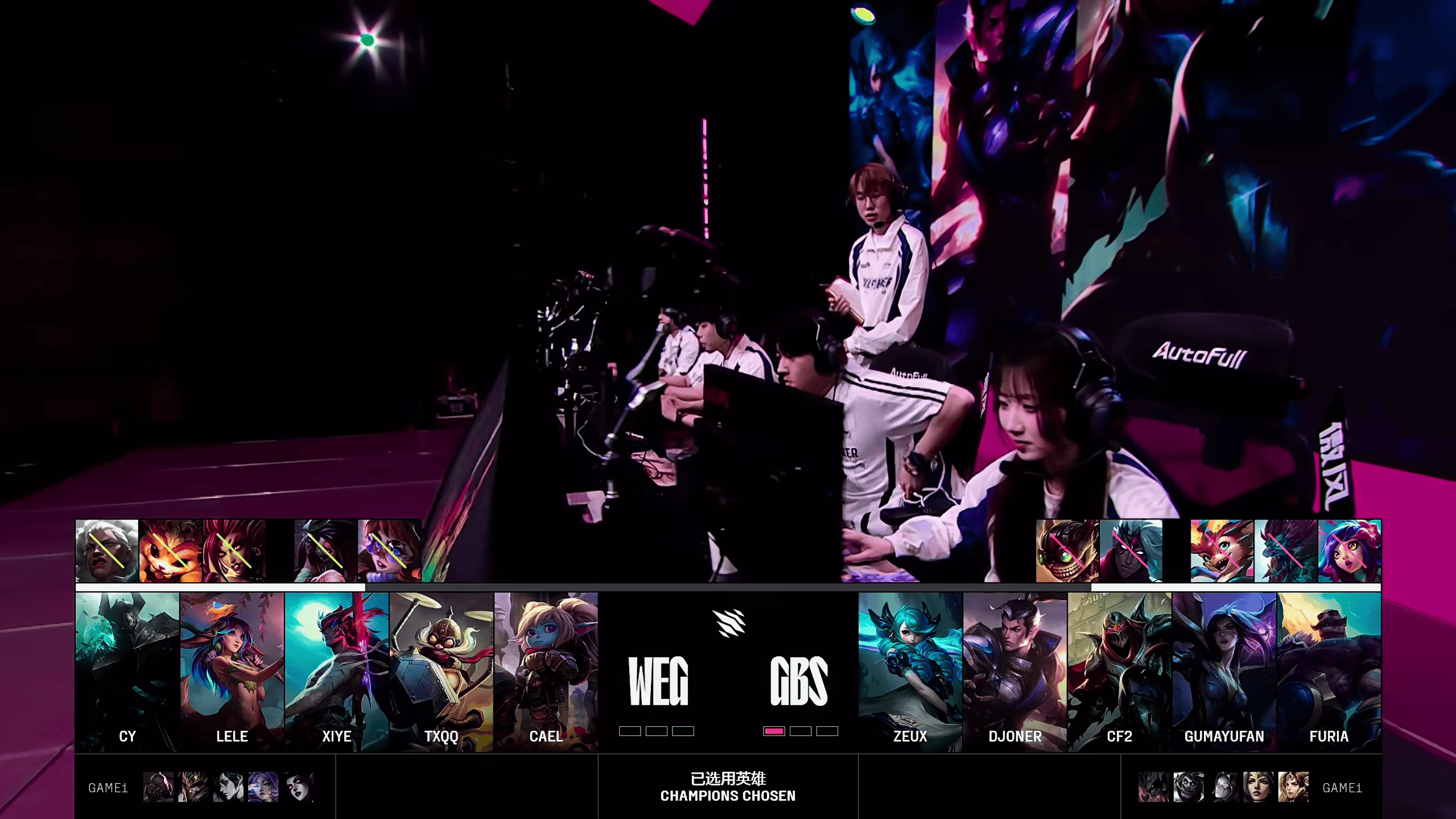 GBS选用:ZeuX格温;DJoner赵信;CF2劫;Gumayufan卡莎;Furia布隆