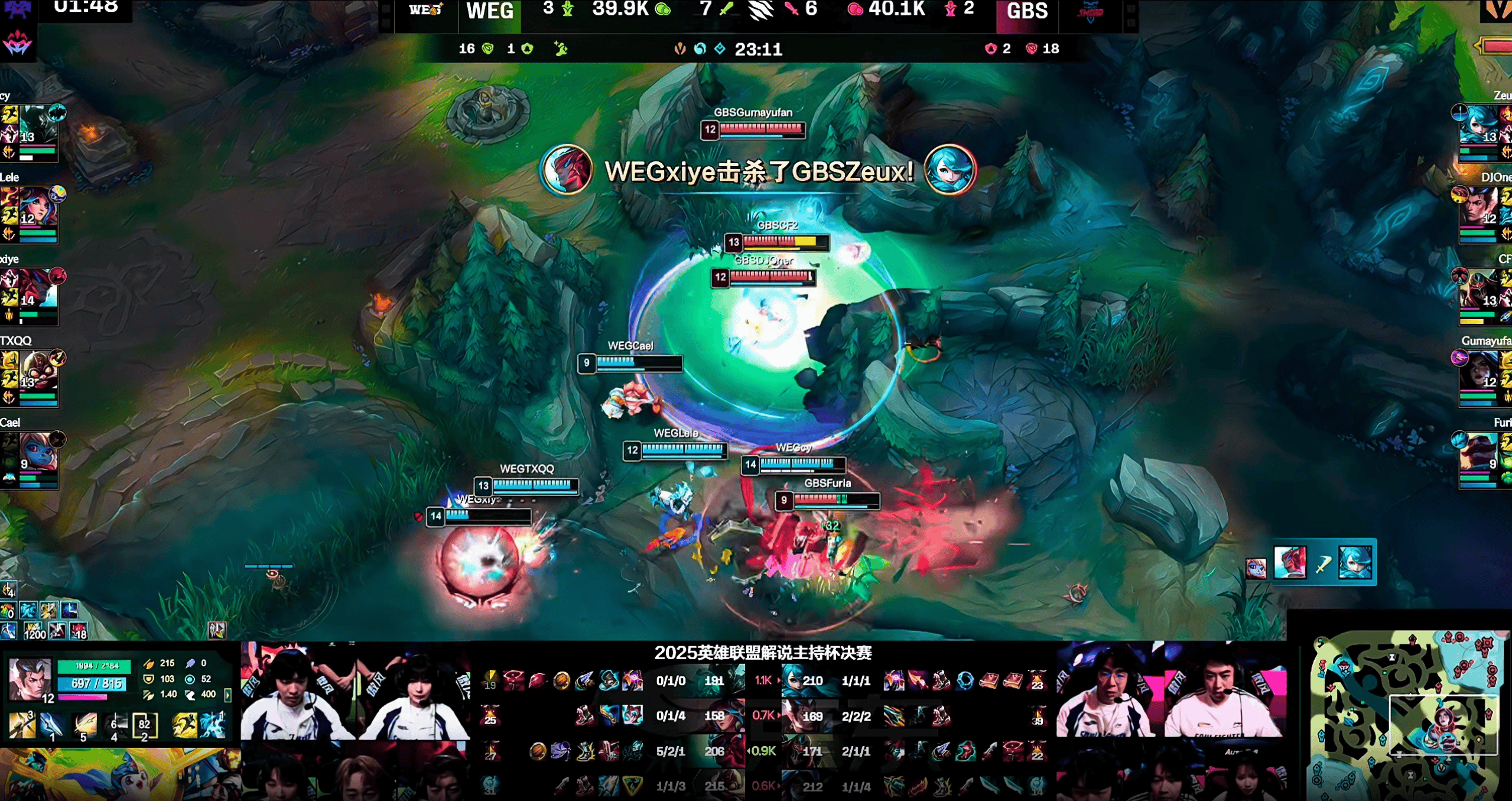 23分钟:WEG集火秒杀格温,团战0换2随后轻松控下龙魂