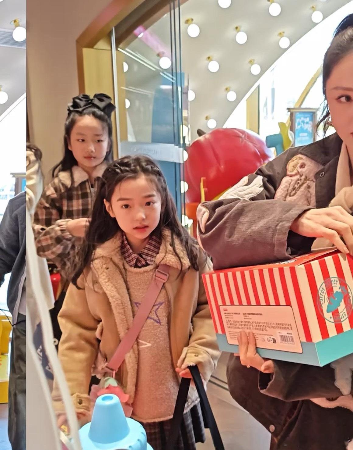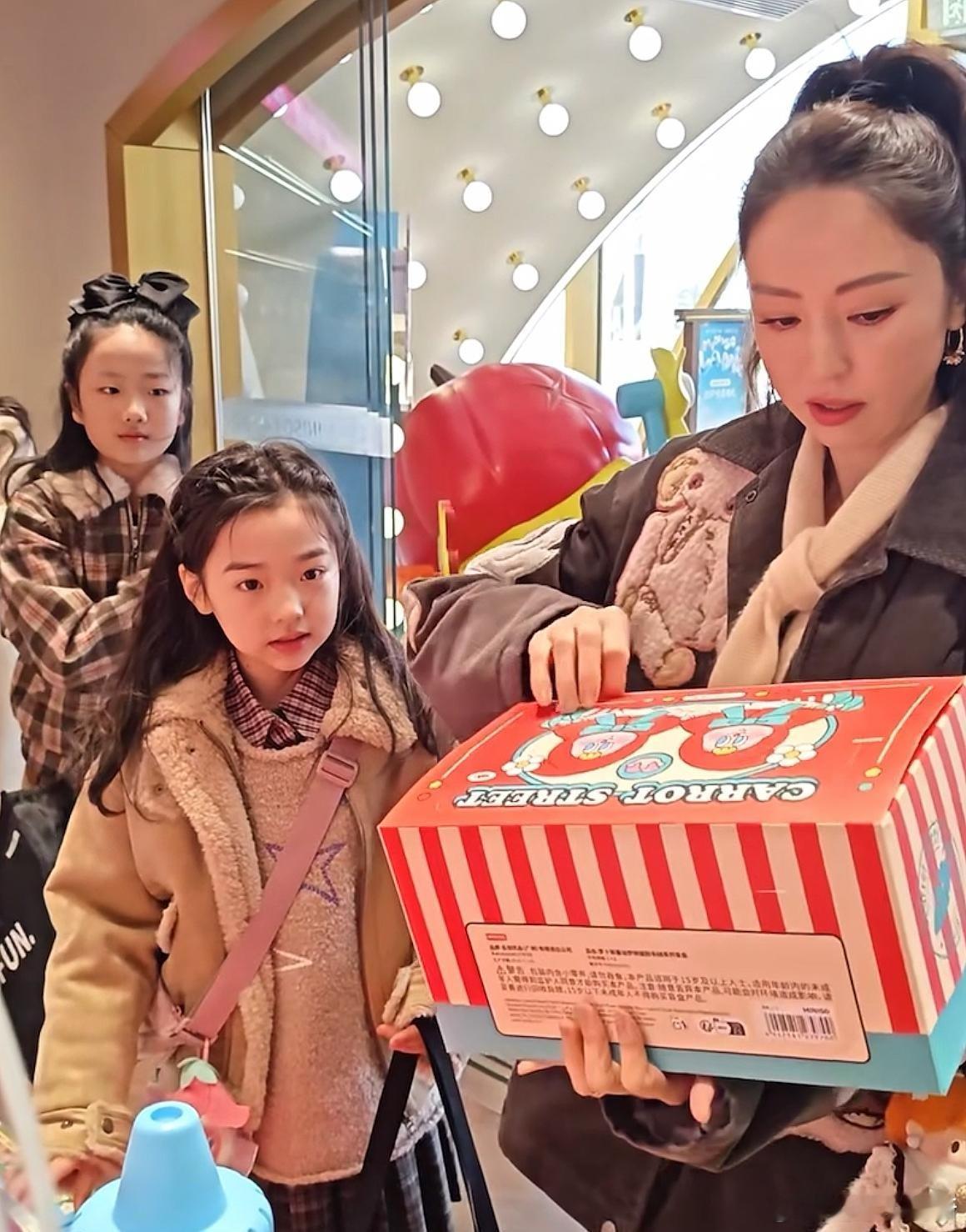 网友偶遇小酒窝和董璇,今天打扮得好漂亮。董璇带着女儿小酒窝出来逛逛,看到玩具又走