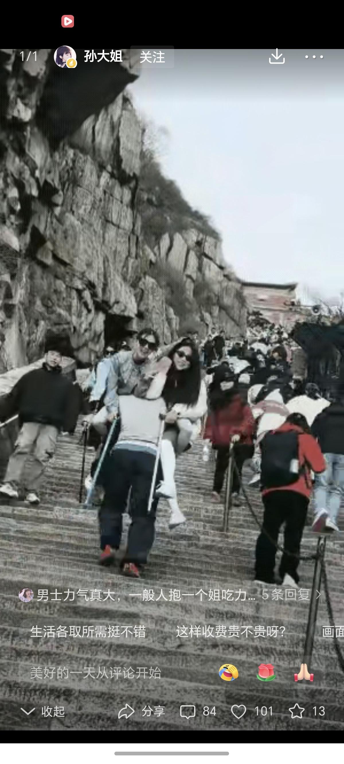 太吸睛了!爬山途中偶遇硬核挑夫,双手各抱一位美女稳步上山,路过的游客都忍不住驻足打量,这份体力实在让人佩服。两位打扮时尚的姑娘拄着拐杖爬山,到半山腰就累得迈不动步,和挑夫谈好价钱后,便有了这场特别的上山方式。 挑夫凭一身力气稳稳托住两人前行,姑娘们满脸轻松笑意,没人纠结爬山的仪式感,只图当下舒心。其实这事儿没什么好议论的,挑夫靠体力换酬劳,姑娘们用金钱换便利,你情我愿的双向选择,本就是生活里最实在的各取所需。 劳动不分高低,消费只要合理合规,没必要过度解读。比起空谈意义,成年人的相处更该懂这份分寸,靠付出谋生计不丢人,为舒适买单也无可厚非,踏实交易里藏着最直白的体面。 你怎么看待这种爬山助力服务?泰山挑货工 挑工