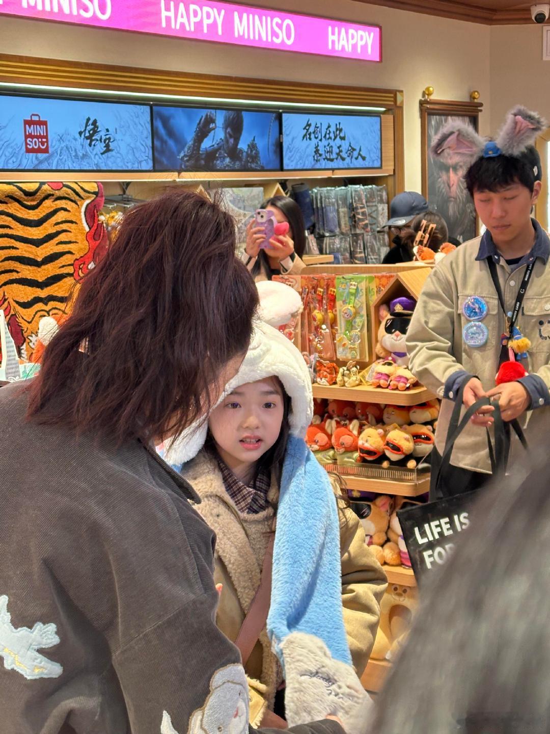 小酒窝穿了格子裙配长袜,在店里拿着个盲盒晃来晃去,董璇在旁边帮她挑款式,还顺手拿了个发圈给她扎头发,真的好有生活感。