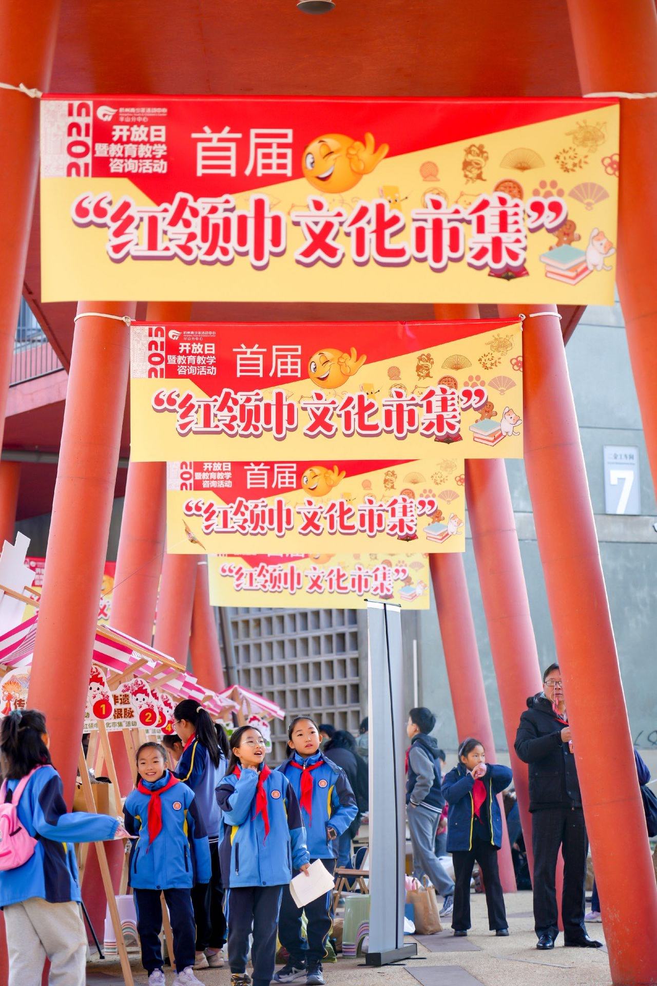 现场还有以“绿色环保、互助分享、爱心公益”为导向的首届“红领巾文化市集”活动。来自全市40余所学校近500名少先队员担任摊主,组队售卖非遗课程成果、闲置书籍、环保手工作品等,其中不少是承载着校园特色与中华优秀传统文化的文创作品等。