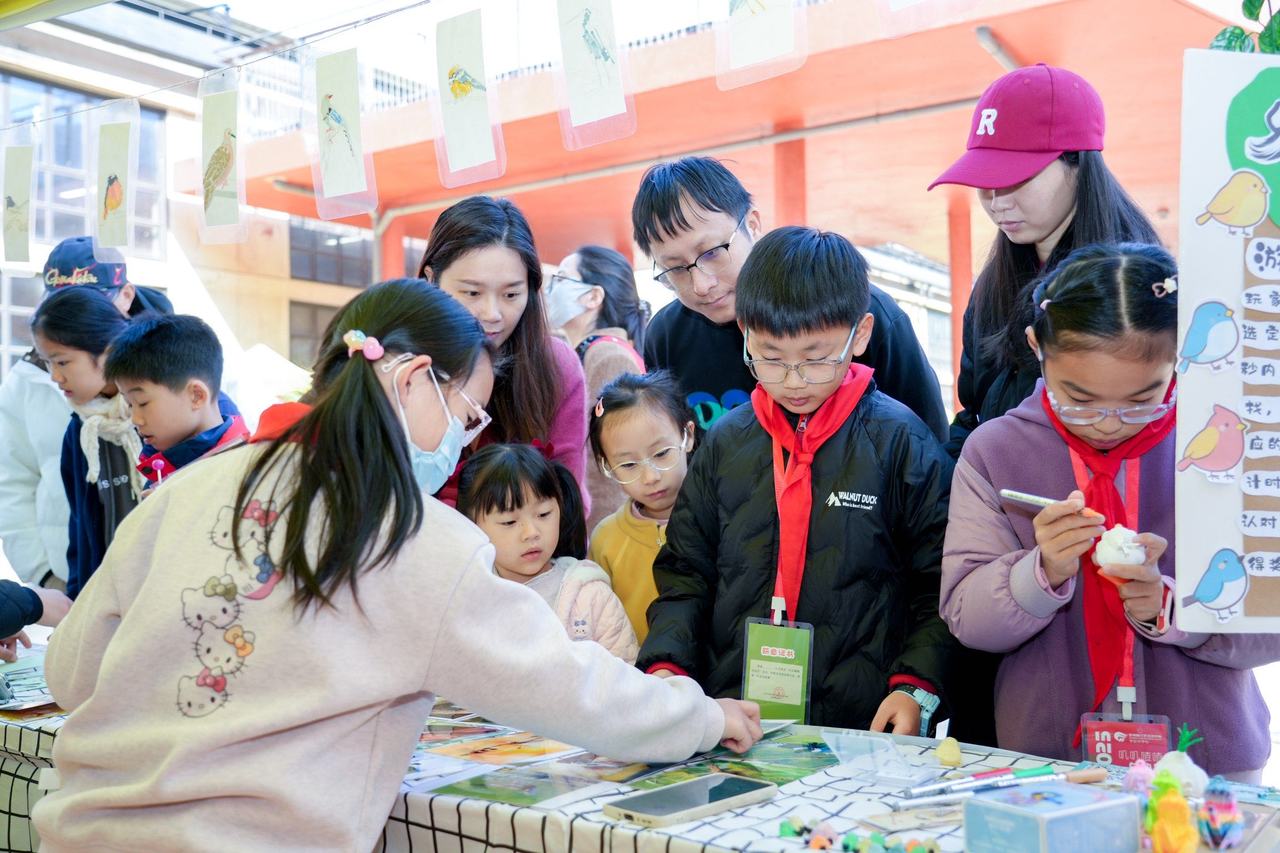 来自杭州市少先队爱鸟俱乐部的20所会员学校孩子,设置了20个特色摊位,精心设计了一系列兼具科普性、互动性与娱乐性的爱鸟护鸟科普实践项目——