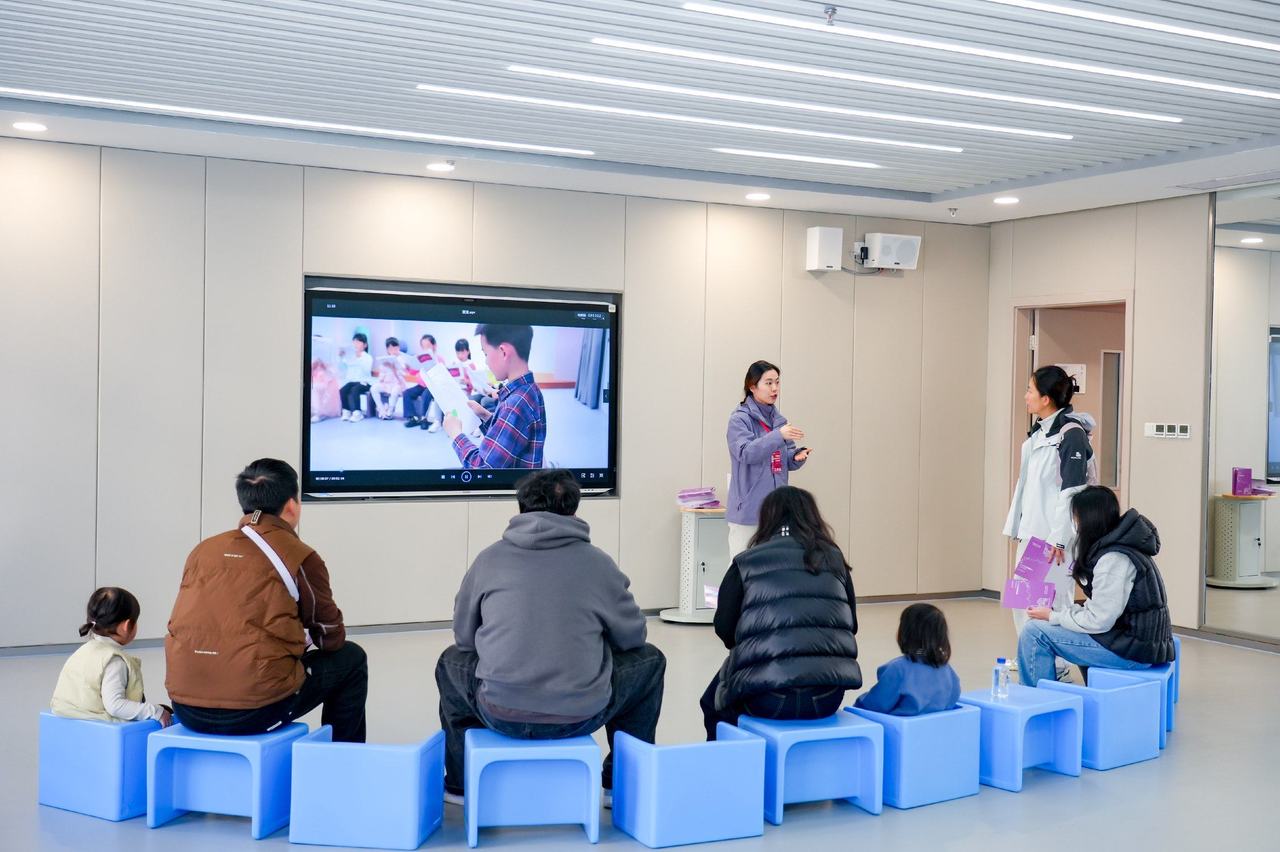 在为青少年提供兴趣课程的同时,半山分中心还打造“青年夜校”“家庭共学”空间,推出八段锦、壁球、拉丁舞、模拟滑雪、成人小语种、亲子心育课堂等课程。其中,“家庭共学”课程为不同年龄段的家庭成员提供共同学习和成长的机会,一起体验学习的乐趣,加强家庭内部的互动与交流,增进亲子关系。