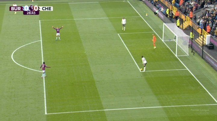 上半场第29分钟,切尔西门球,桑切斯将球踢给查洛巴,伯恩利球员进入禁区逼抢,查洛巴用手将球按在地上表示球还没开出,伯恩利球员向裁判抗议查洛巴手球,但裁判没有表示。