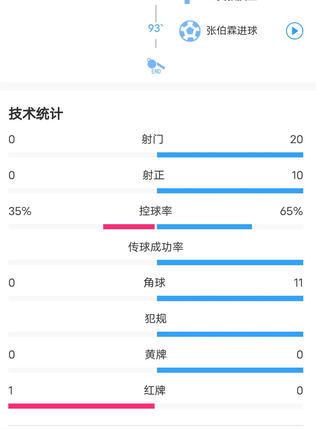 这支国少队强的可怕,4:0巴林U17取得预赛开门红 赛前都以为面对预赛最强对手巴林是一场苦战,没想到中国队会以摧枯拉朽之势,半场就把对方拍死。上半场以3:0领先,对方还被罚下1人,最终4:0大胜,要命的是我们还有3个门框。 赛后数据更吓人,射门20:0,对,你没看错,对方全场0射门,控球率65%:35%,角球11:0,比赛几乎是半场攻防演练。 以前都是说现在的国字号越小越妖,现在看确实没错,上半场的比赛,可以看出国少队的个人能力、比赛节奏都高出巴林一个档次。下半场国少队几乎就是在锻炼替补阵容。 希望足协别再瞎指挥瞎折腾了,不然这一波球员又被毁了。