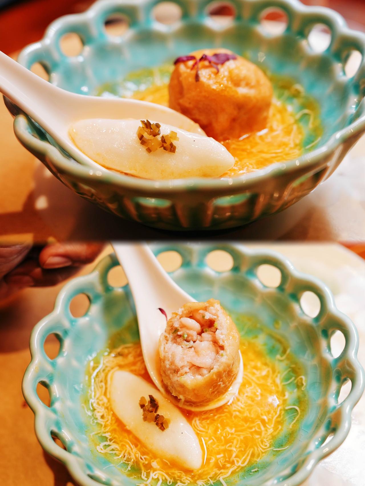在扬州,若要寻觅淮扬菜的巅峰诠释,那必须是扬州唯一摘得米其林一星的餐厅——香格里拉酒店香宫中餐厅! 扬州美食记录 江南淮扬菜 秋意正浓时,这里一场“四蟹争艳”盛宴🦀,由周晓燕大师高徒、米其林主厨朱逸飞掌勺,以雪蟹、松叶蟹、大闸蟹、梭子蟹演绎“不时不食”的淮扬精髓。 🥘 高邮麻鸭汤冲浪雪蟹藕粉圆子,鸭汤醇厚撞蟹肉鲜甜; 🦞 姜丝焗大闸蟹以砂锅焗烤,姜香衬出蟹鲜本味。(卖500一只的5两公蟹也是吃上了!) 🍤 酸辣蟹汁指橙玻璃大虾,果酸、虾脆与蟹粉交织;🍜 虾汤文思面筋芙蓉鱼片,蟹肉虾仁藏于面筋,鲜醇满口。 🦆 八宝葫芦鸭显脱骨绝技,葱香鸭香满溢; 🥩 私房脆皮小牛肉外酥里嫩,准汁葱烧蹄筋马鞍桥鲜糯入魂。 🔪 文思豆腐细如发丝,搭配枣汁凝冻、银杏与鱼子酱,传统碰撞现代。 [爱慕]还有粉糯绵密的荔浦芋头吸饱鲜汁,皮香肉嫩的熏鸽带着醇厚烟火气,每道都是淮扬菜的匠心极致~也是视觉味觉双重享受, [强]整个上菜完全考虑顾客味蕾体验,咸甜搭配浓淡相宜,每当以为已经再也吃不下,下一道菜品又完美中和,让我们吃得一直停不下来[偷笑] 难得的是如此高品质出品,性价比还超高,真的超五星推荐!