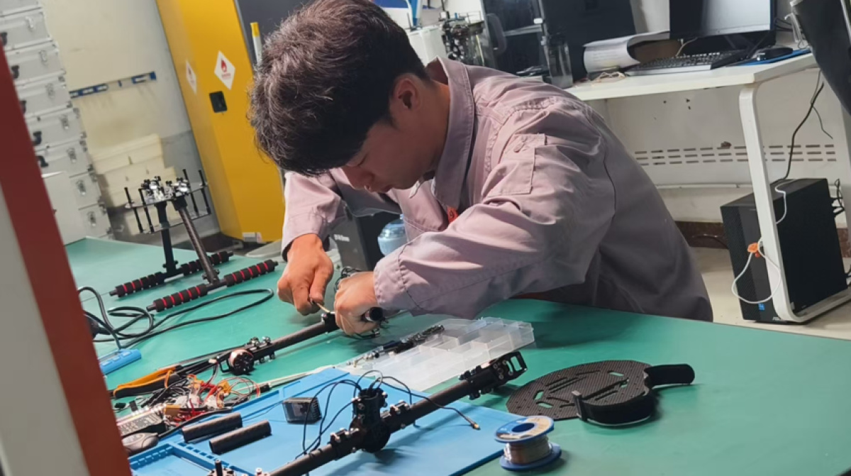 但他始终相信,热爱能抵岁月漫长。为了补齐短板,他把所有课余时间都投入训练:从最基础的焊接工艺到复杂的系统调试,从简单的悬停到高难度的特技飞行,他一遍遍练习,一次次重来。担任学生会主席的经历,更让他学会了在学业、工作与训练间寻找平衡,在服务同学的过程中锤炼了坚韧品格。