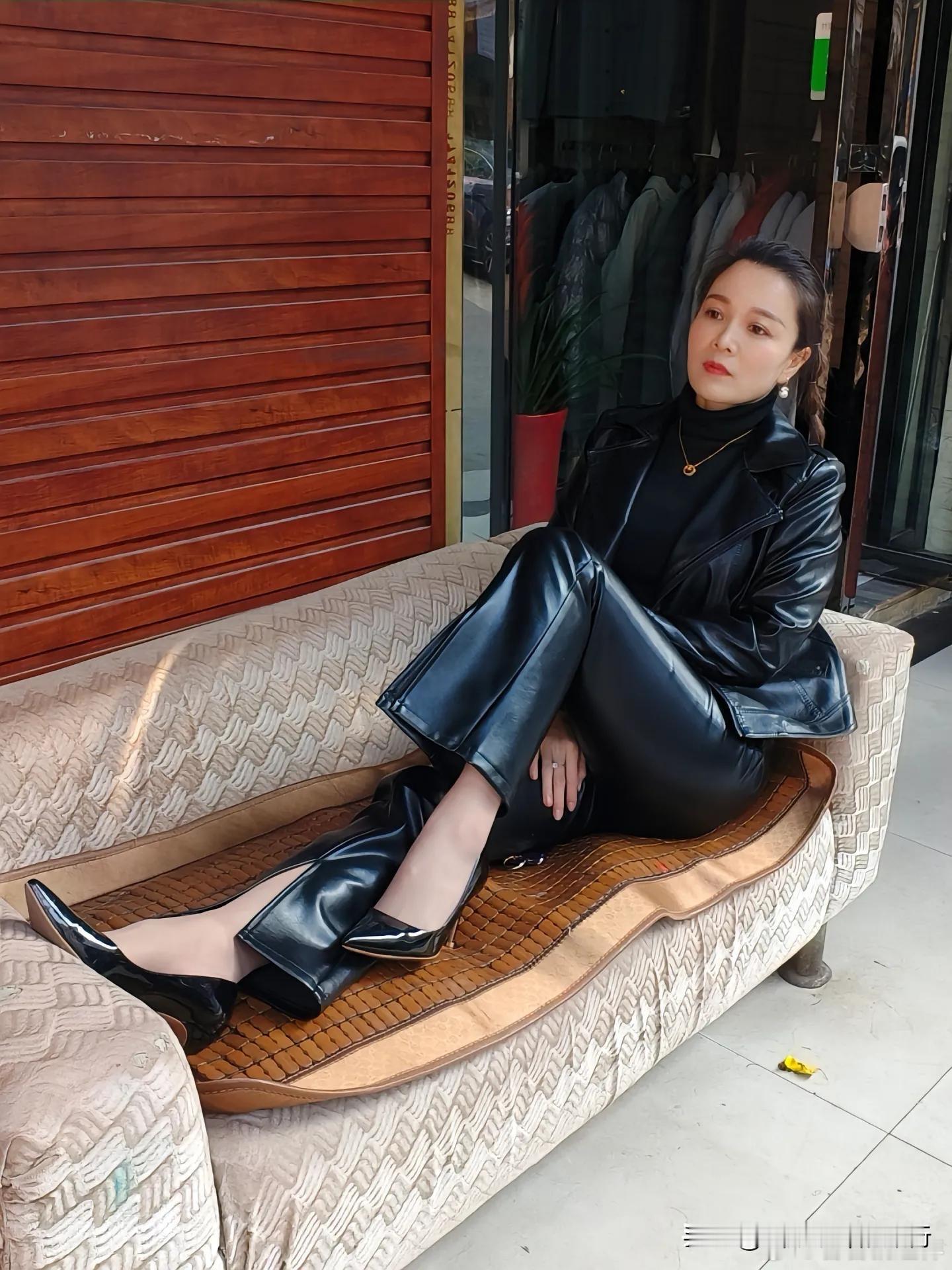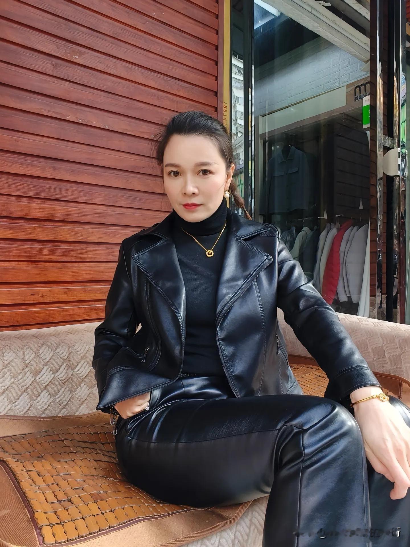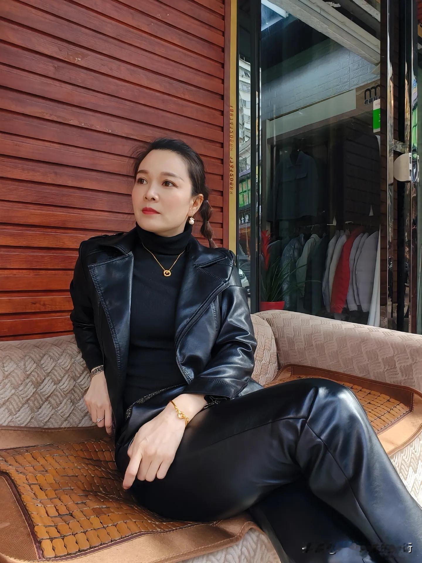 都市时尚女孩,黑皮夹克搭配透视丝袜,时尚感爆棚!