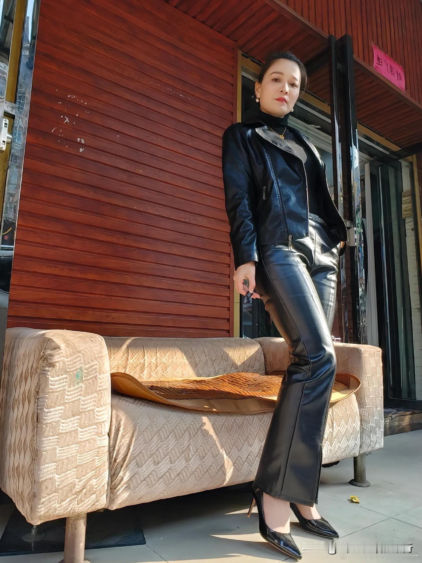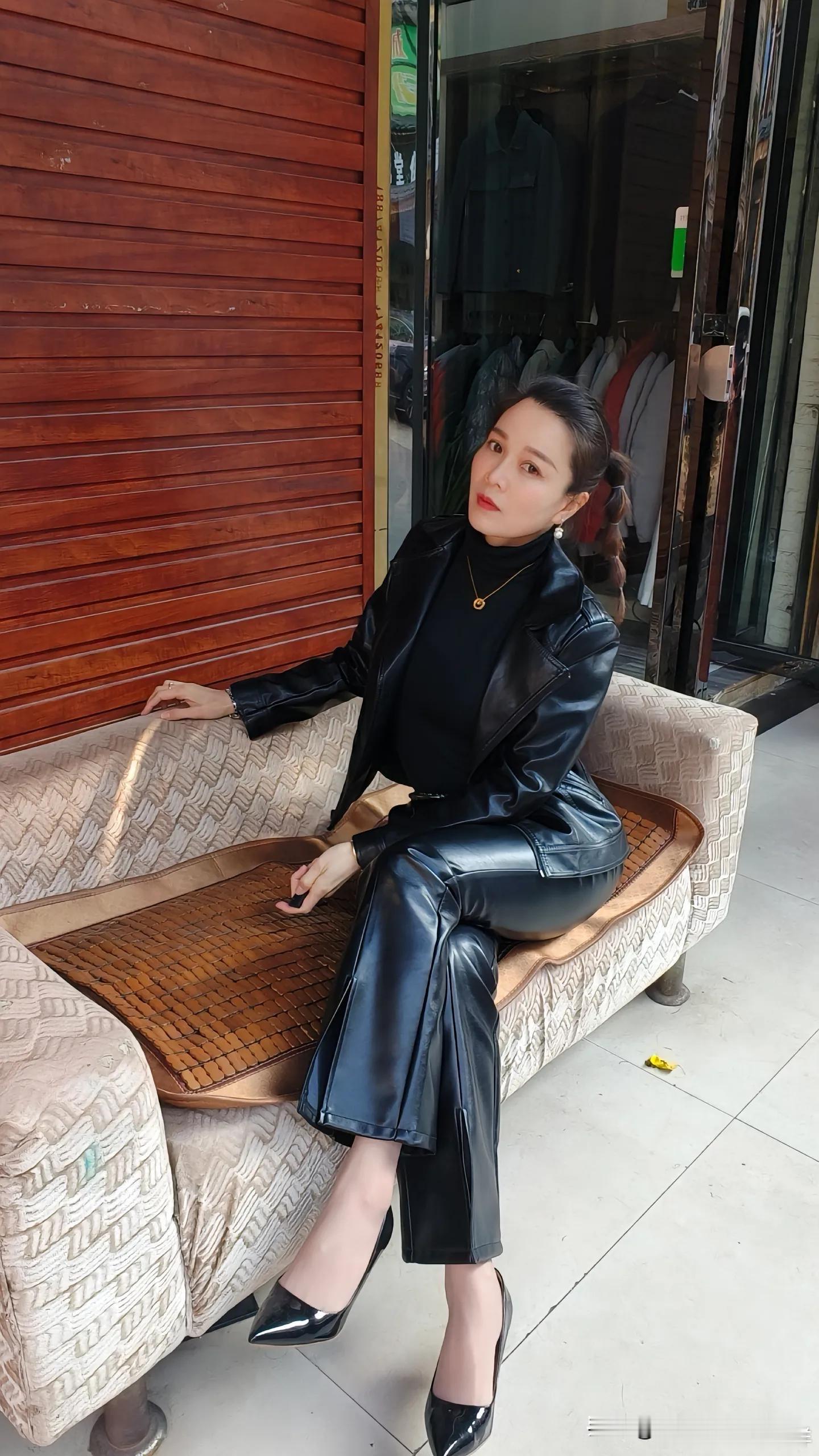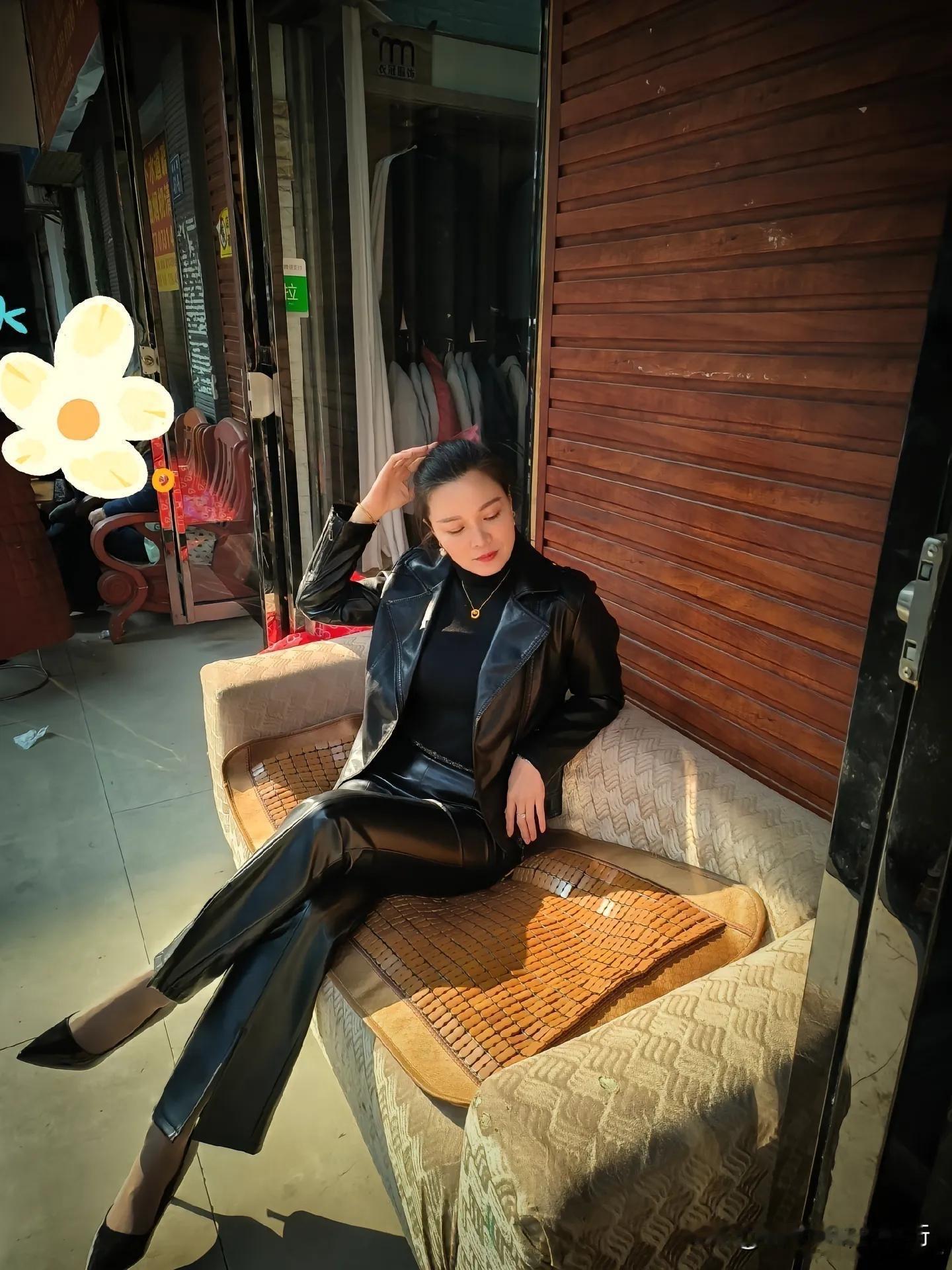 都市时尚女孩,黑皮夹克搭配透视丝袜,时尚感爆棚!