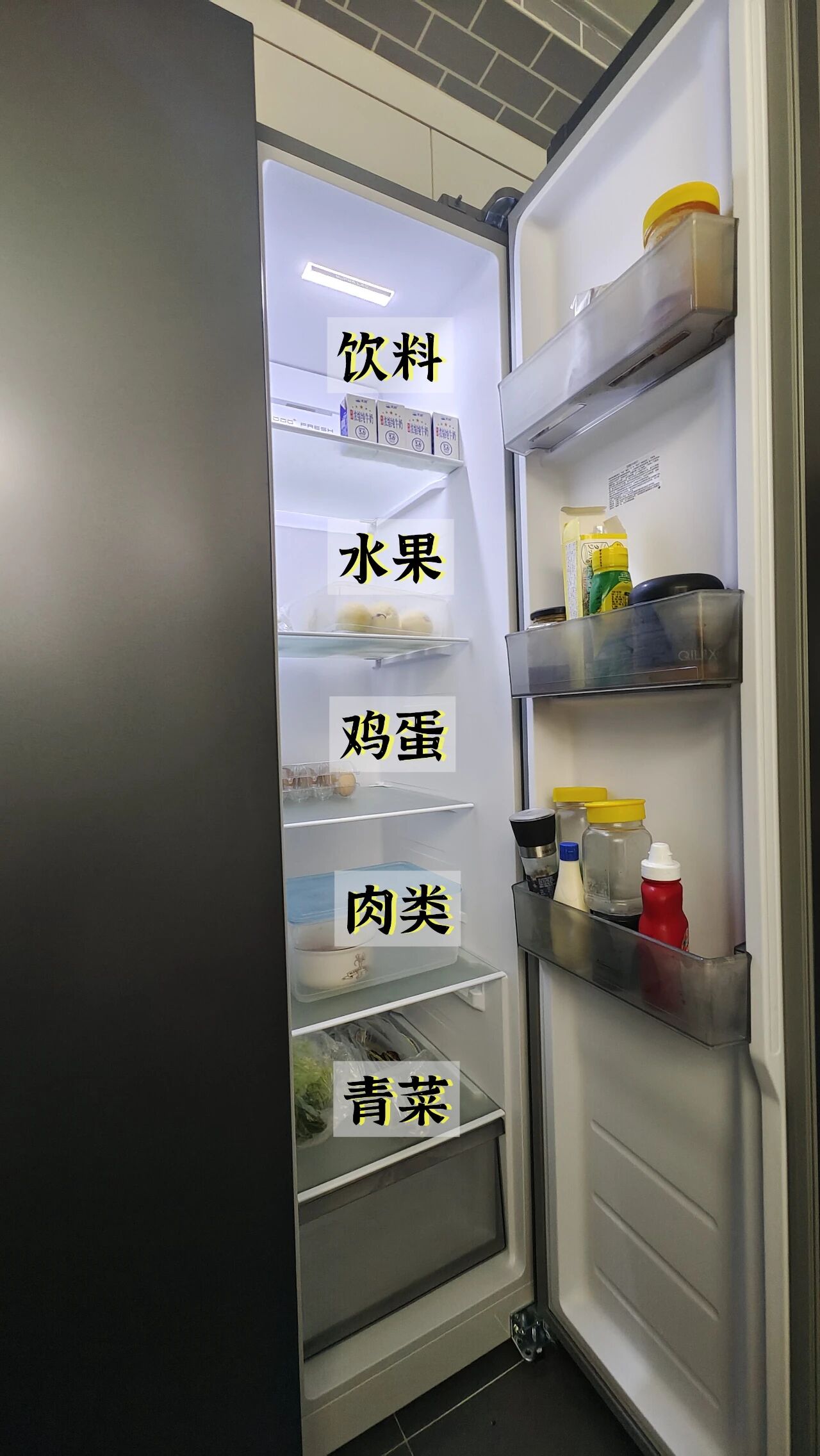 我家最近换了冰箱,对“柜子内部结构”深有体会——之前的十字门冰箱,内部分区少,蔬菜、水果、肉类堆在一起,找东西要翻半天;现在的对开门冰箱,有专门的饮料区、水果区、蔬菜区……东西分类放好,一目了然,再也不用乱翻了。