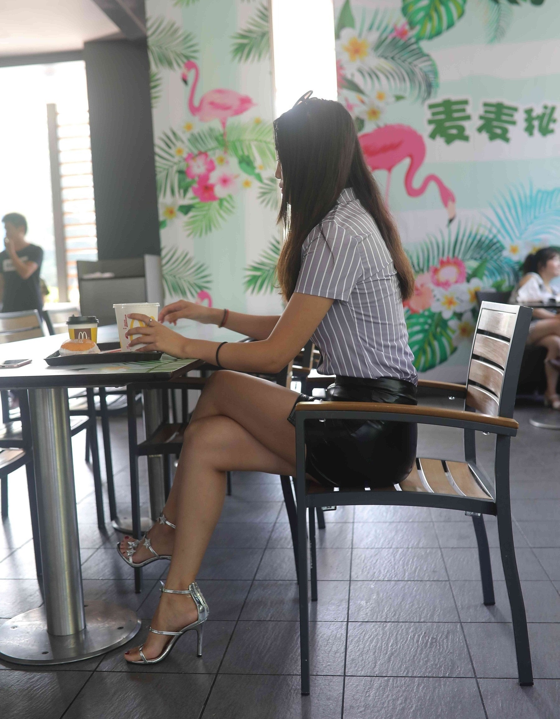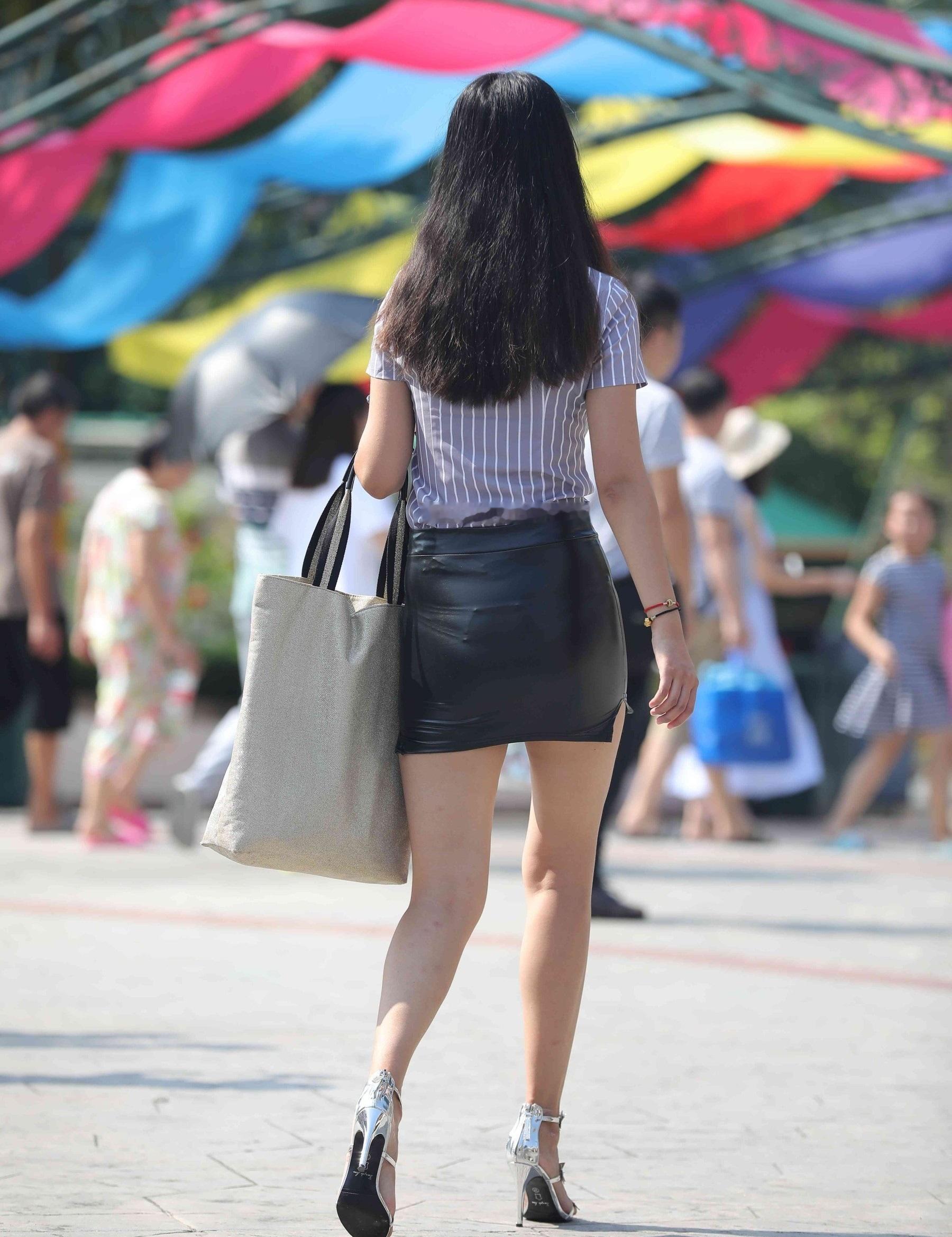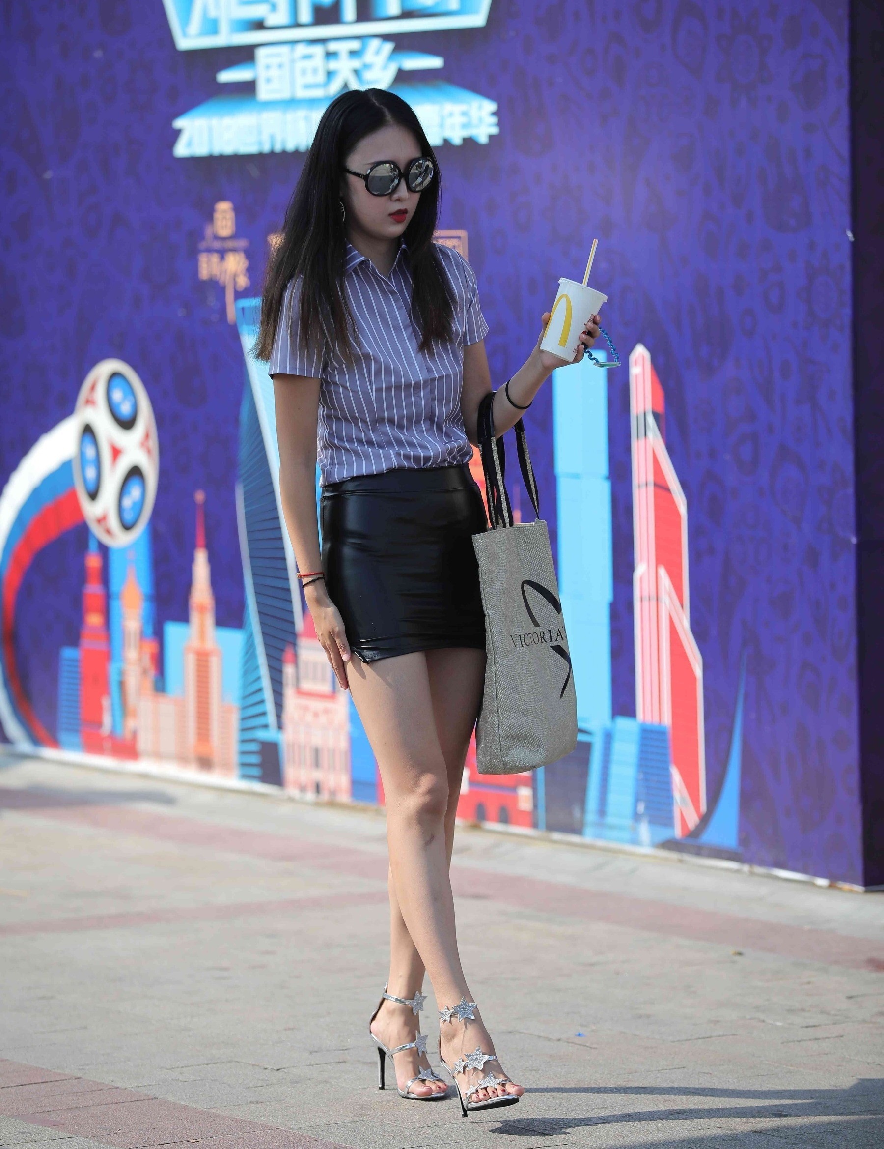 👀看这位小姐姐,条纹衬衣利落大方,黑皮裙紧致勾勒完美曲线,每一步都走出自信与魅力!👠