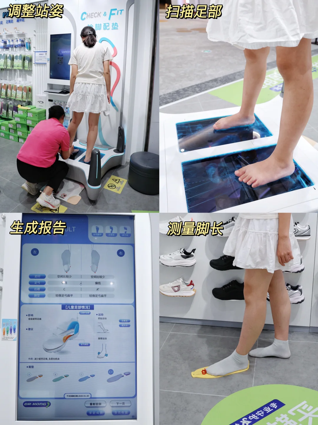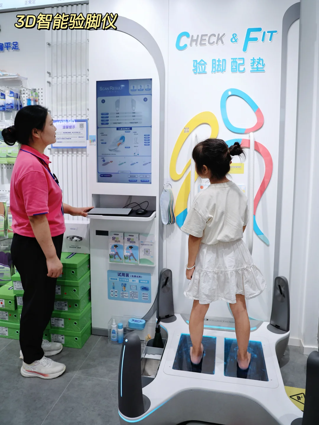 一进门就被“黑科技”验脚仪吸引了‼️店员小姐姐超亲切,说他们家的验脚配垫服务已经做了26年,3D智能验脚仪特别专业[派对R]娃的小jiojio踩上仪器,仪器开始三维扫描立体脚型、通过AI智能算法分析足部情况,不一会就能得出一份详细的足部报告,连足弓高低、足印、后跟外翻情况都能精准识别!我和娃像看科幻片一样,直呼“哇塞”✨