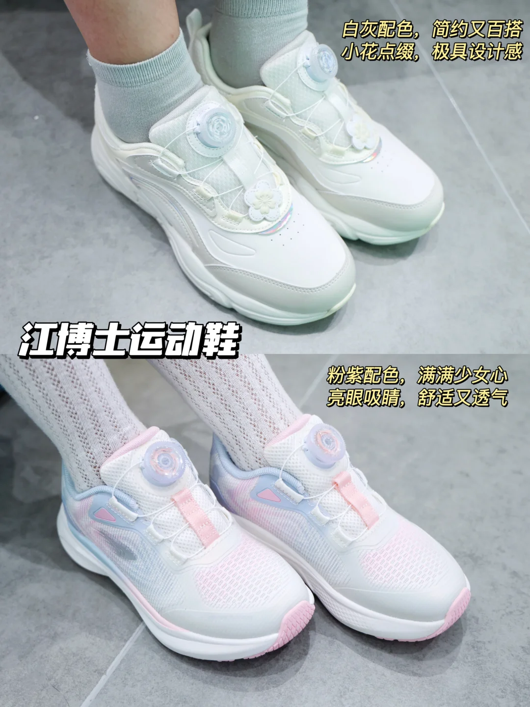试穿时Cyndi直接原地蹦迪:“妈妈!这鞋垫穿着好舒服呀,像踩进棉花糖里”,姐妹俩选的江博士童鞋,都颜值好高👏姐姐选的白灰配色,加上小花花点缀,极具设计感又百搭。妹妹的粉紫配色满满少女心,亮眼吸睛,舒适又透气👍