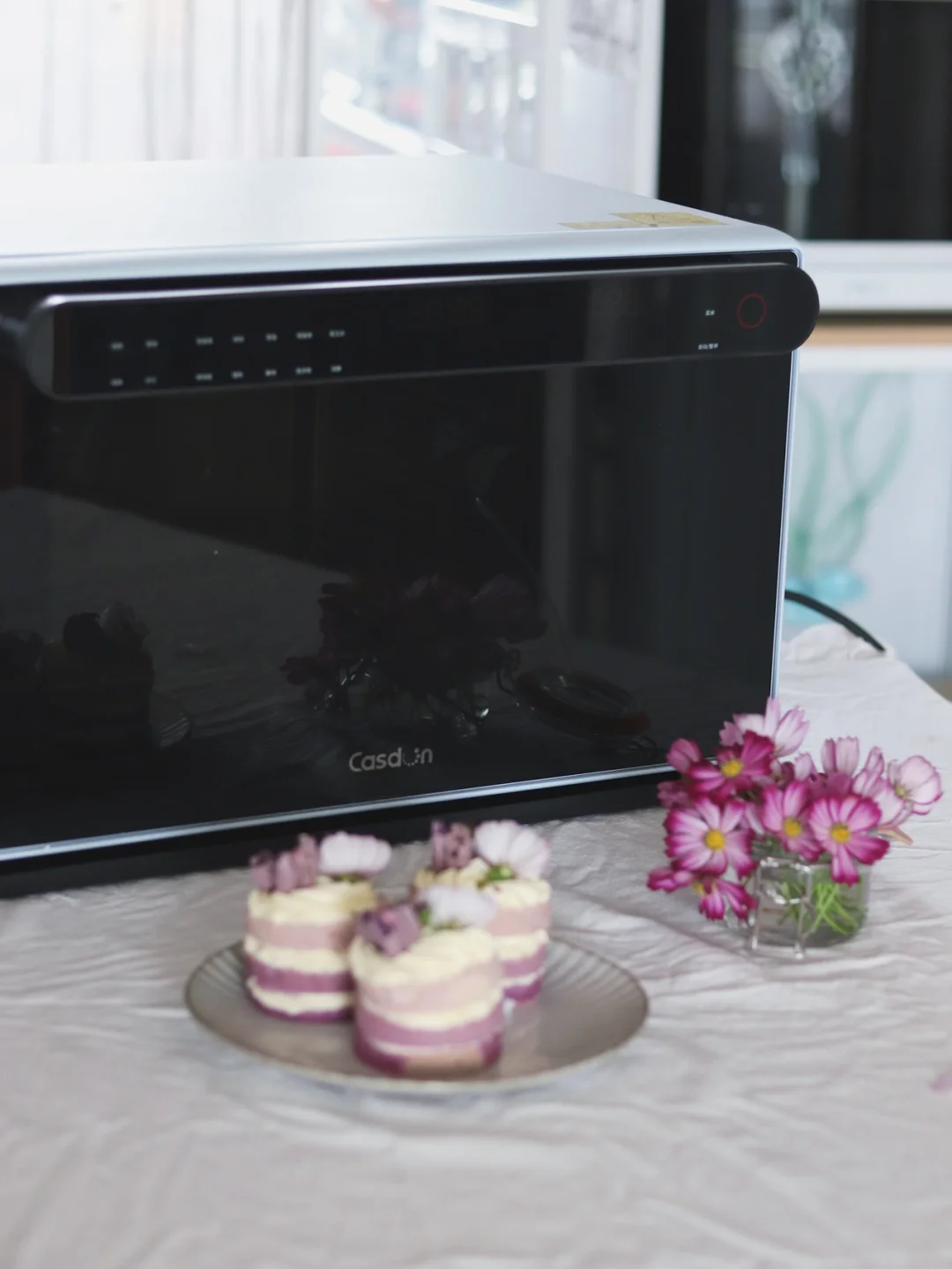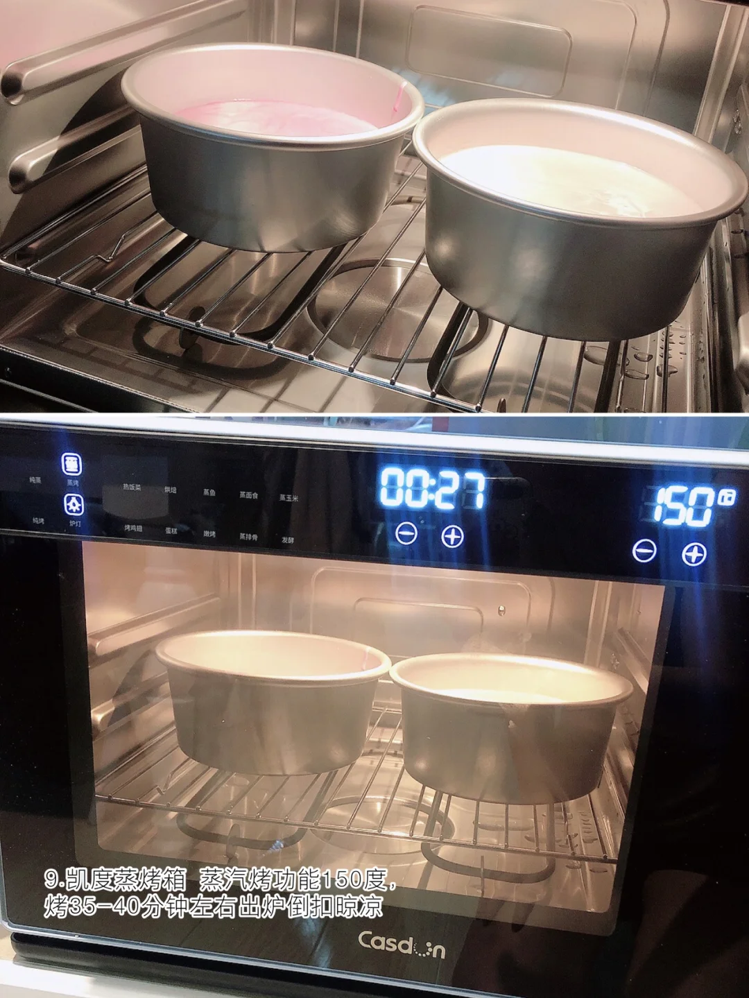 关于烤制的温度和时间,请一定根据自己的蒸烤箱脾气来调整!我用凯度B7蒸烤箱的蒸汽功能来烤戚风,这个功能可以提高戚风的成功率。