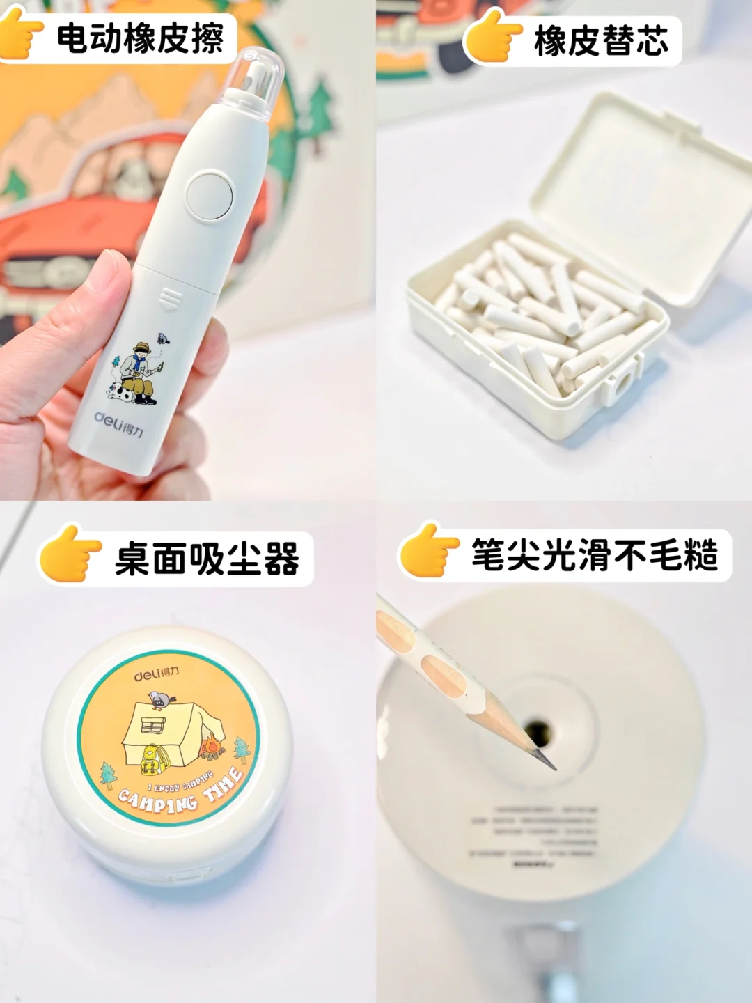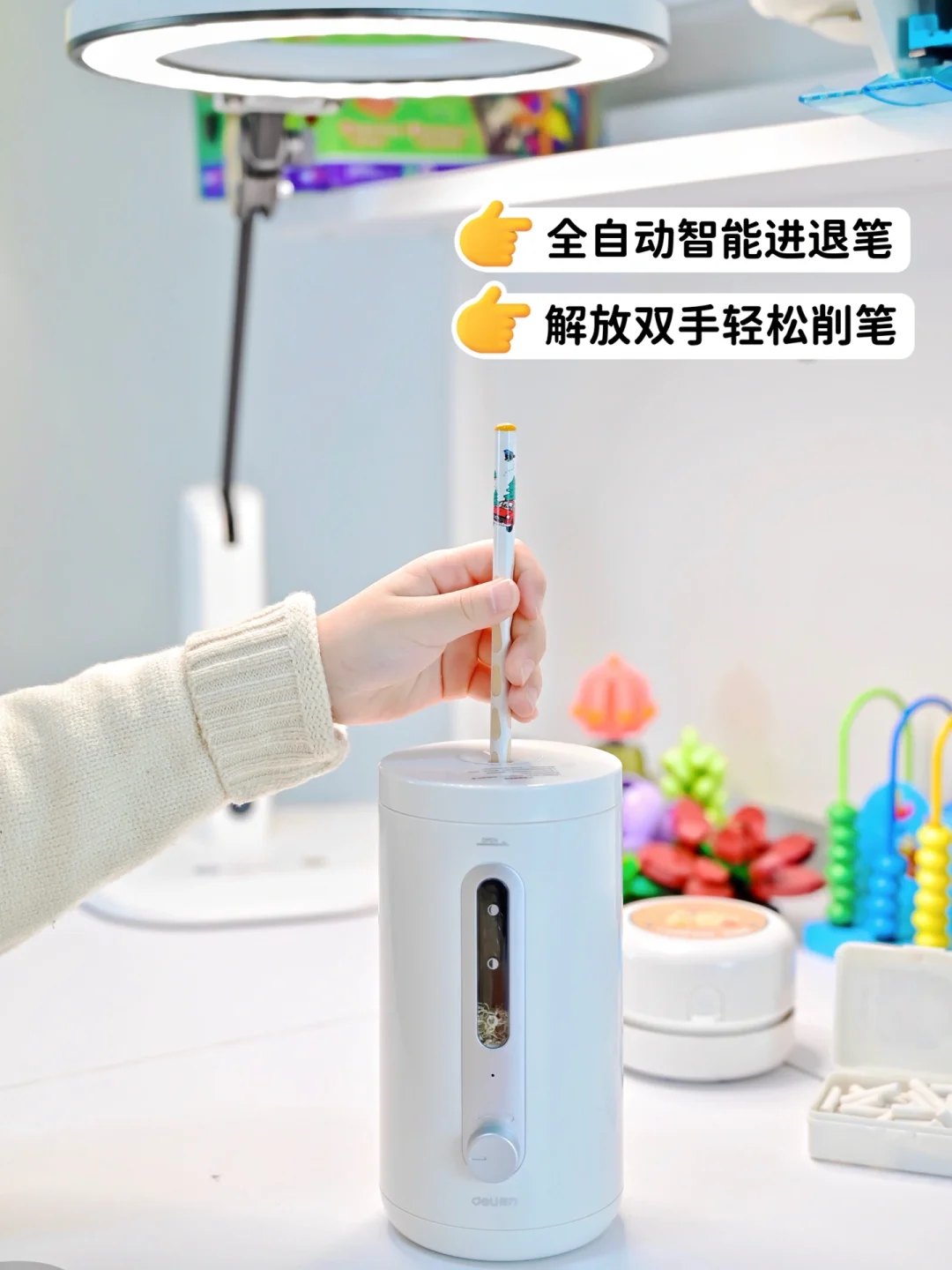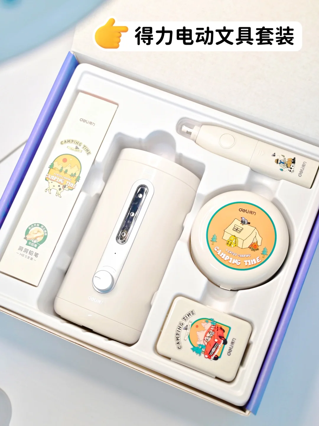 像这次我给娃安排的得力电动文具套装☝️,简直省下了不少事!💥平时我都是每天跟娃做完作业,👀用那种老式的手摇削笔机,动不动铅笔就会断铅跑出来~而且还会摇的我手酸!有了这个电动削笔机可真的省力了不少,不仅能自动排断铅,削的速度也快!五个档位随便选,简直不要太方便!