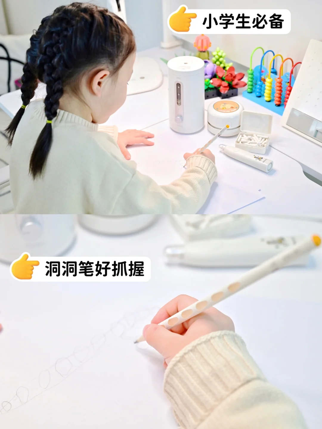 里面的铅笔✏️形状很好看,握起来写字很省力,娃现在写字时间长一点也不会说手痛了捏!