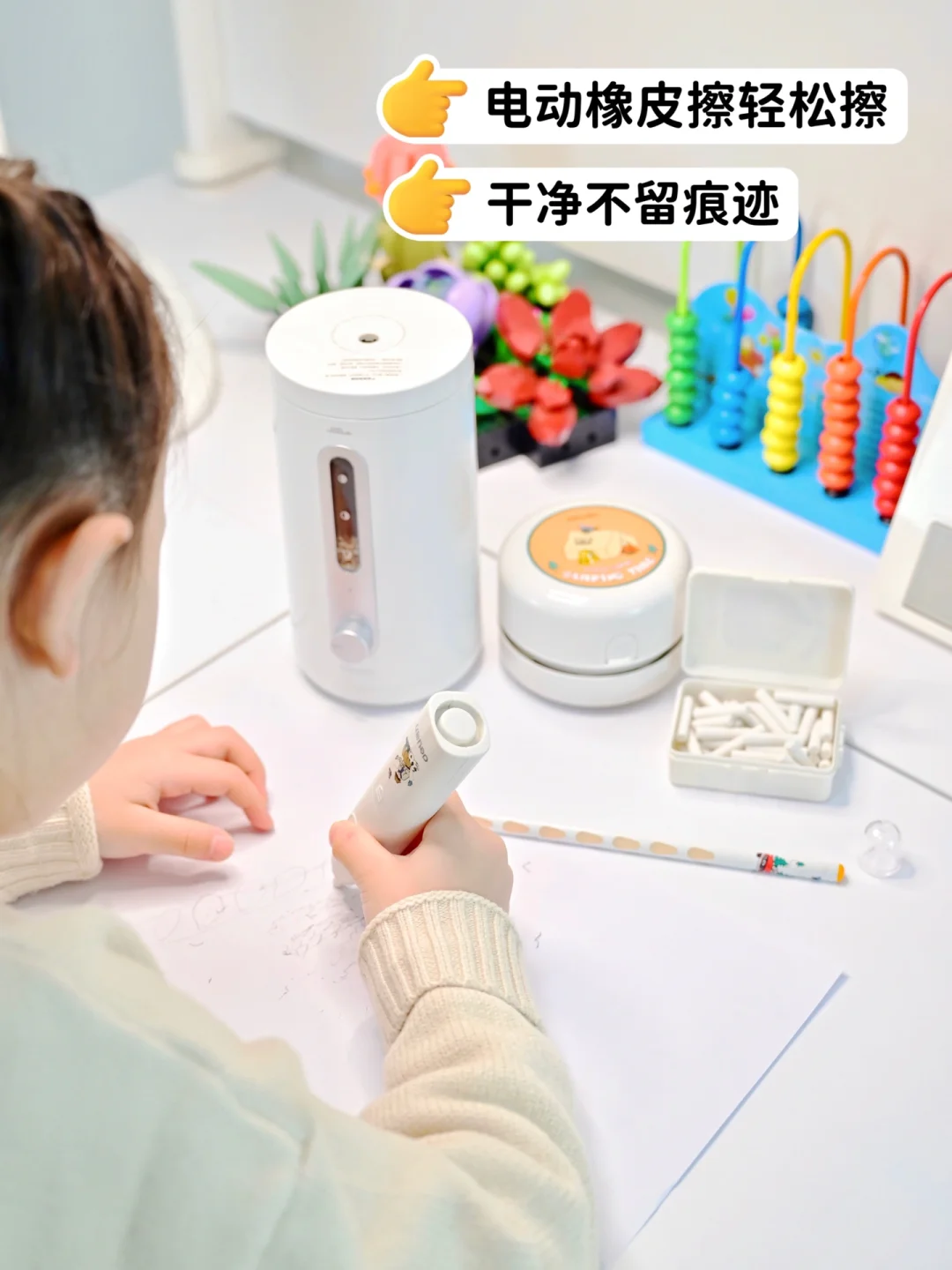 害有这个电动橡皮,老母亲简直像是遇到了救星⭐!不仅有超多替换芯儿,续航也很牛!我充一次电,就能用很长时间!而且擦出来的本子也很干净!毕竟以前看着我们家娃自己擦都要擦出火星子🔥的架势,有了这个我就不用怕本子哪天会擦漏辽~