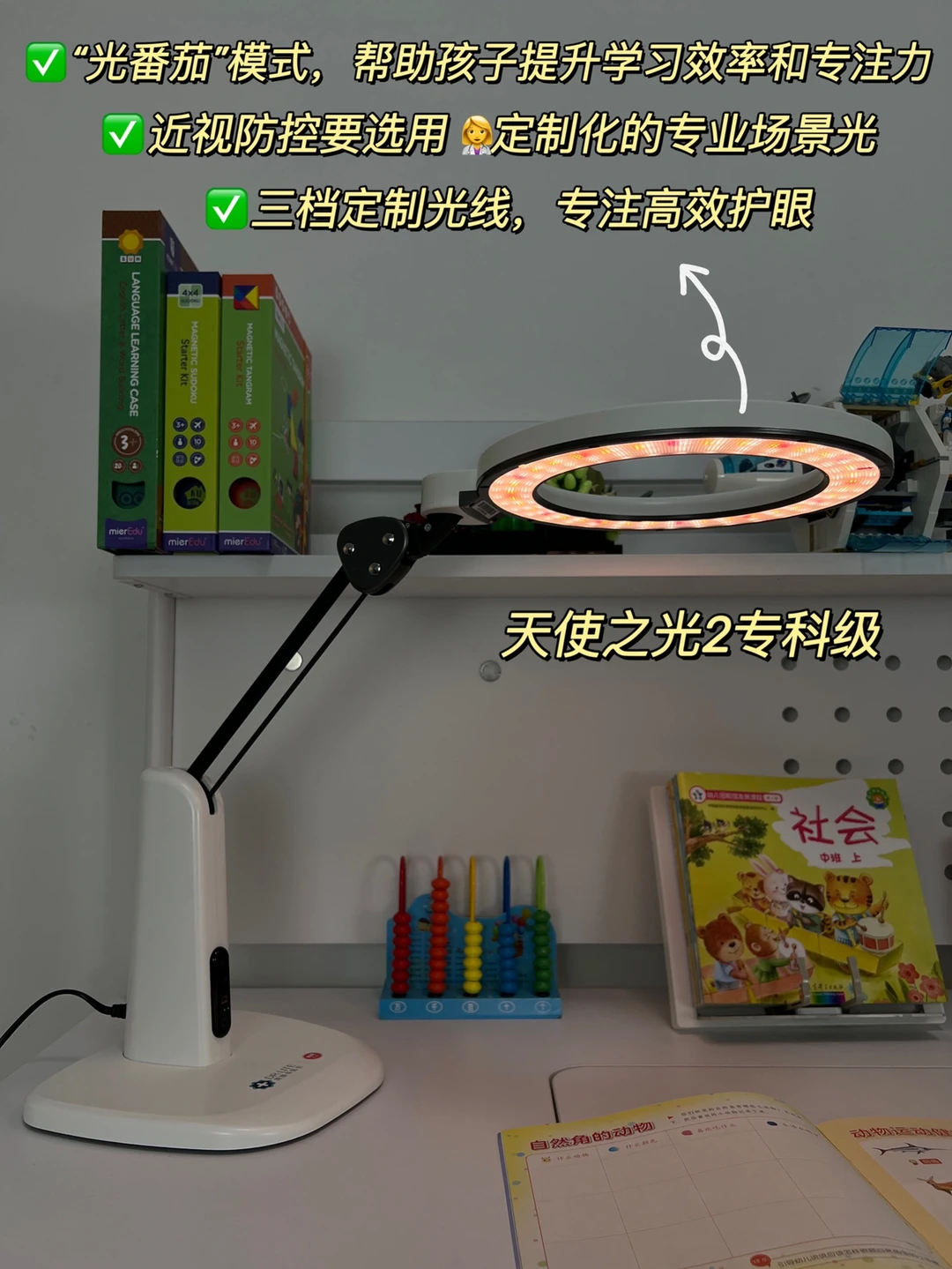 1️⃣两款都有光番茄学习法,这个也是这款系列灯的一大亮点,这个模式是通过45分钟学习,再加上10分钟休息的灯光循环,既可以减轻用眼压力,还可以帮小朋友保持更持久的专注力,更快速完成作业~