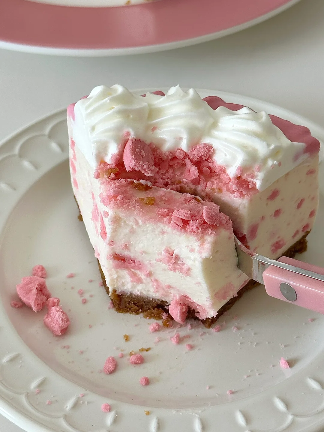 焦糖饼干碎100g|融化的黄油45g|奶油奶酪250g|糖40g|淡奶油300g|吉利丁片10g|草莓饼干碎50g|热牛奶 60g