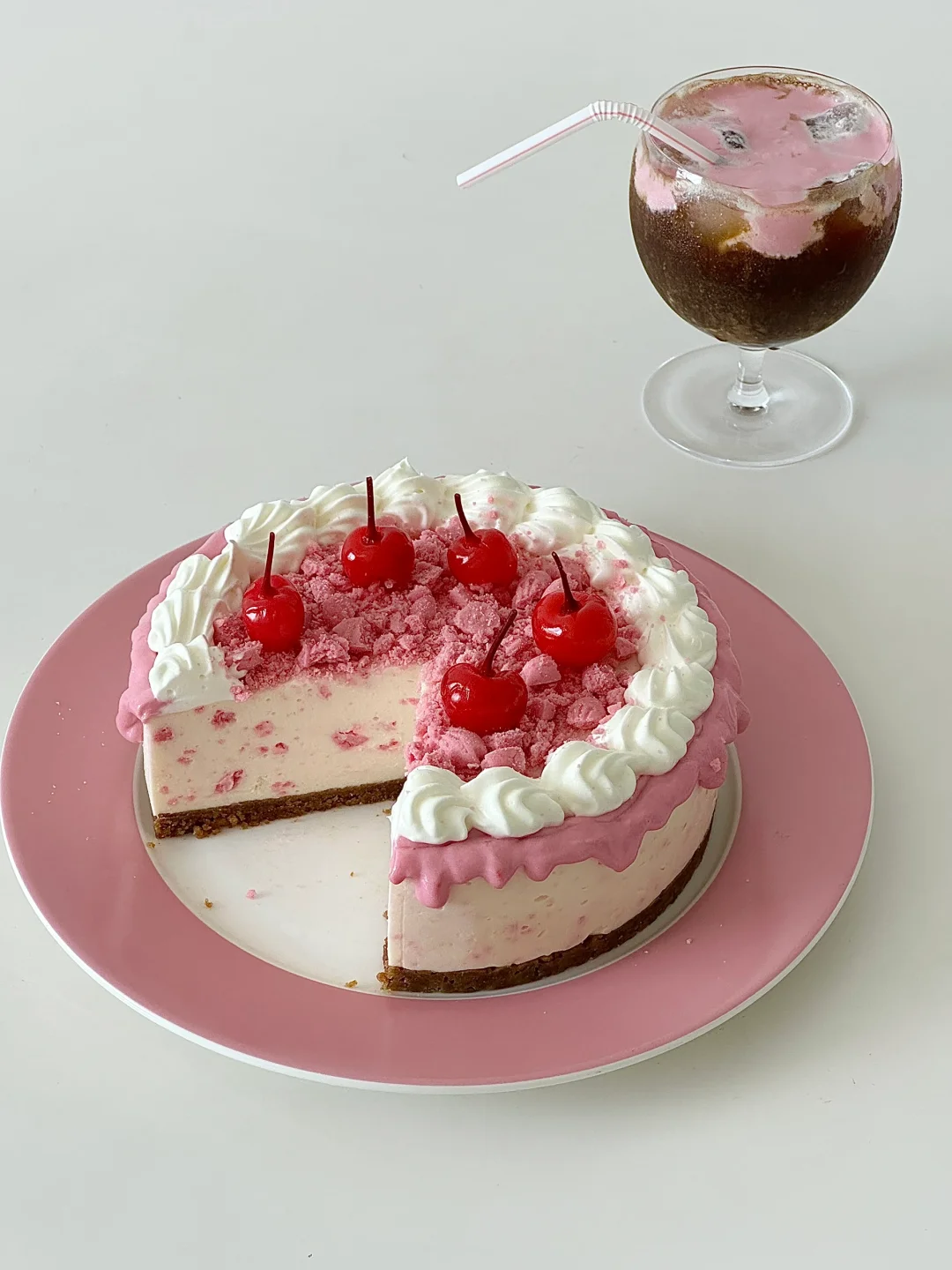 奶油淋边:淡奶油50g➕草莓粉5g➕糖4g