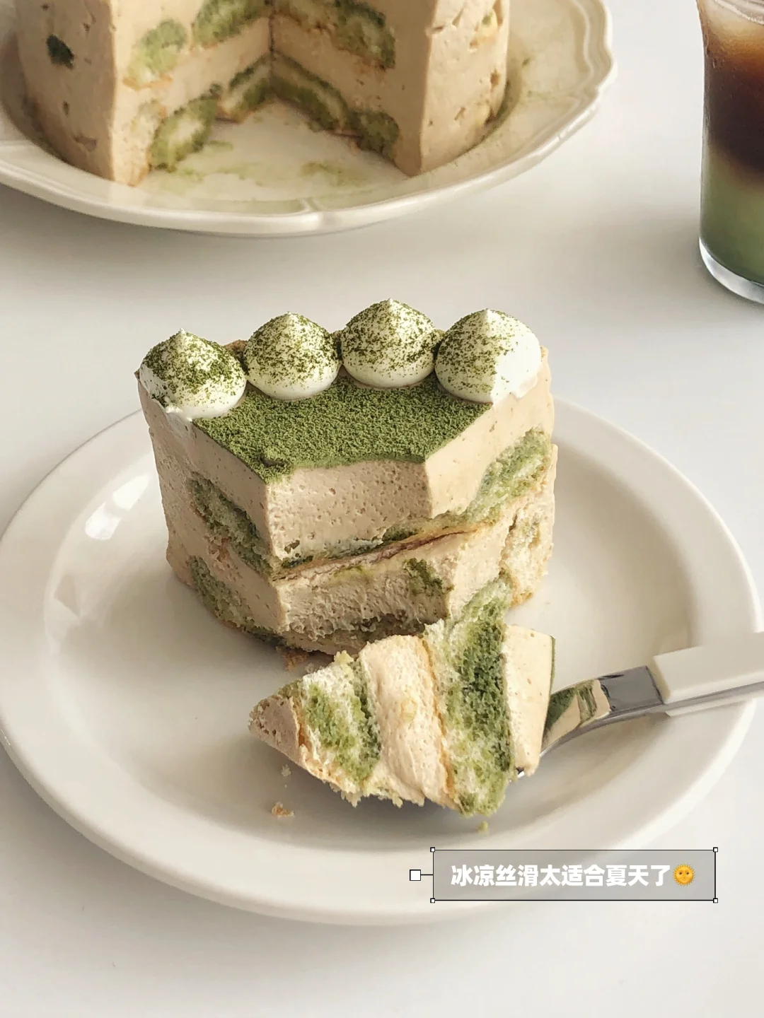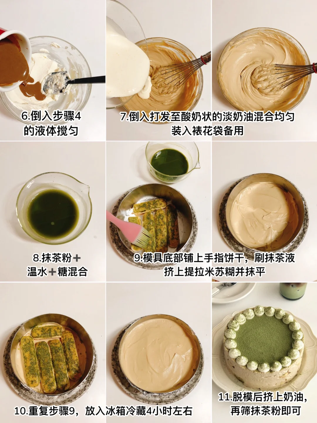 ❽脱模后挤一点奶油装饰,筛上抹茶粉就OK了