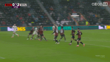 第35分钟,西汉姆联右路头球传到禁区,威尔逊胸部停球后背身左脚勾射破门!伯恩茅斯0-2西汉姆联↓