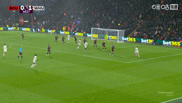 第11分钟,阿雷奥拉长传前场,威尔逊大禁区外胸部停球顺势右脚抽射,皮球窜入球门左下角!伯恩茅斯0-1西汉姆联↓