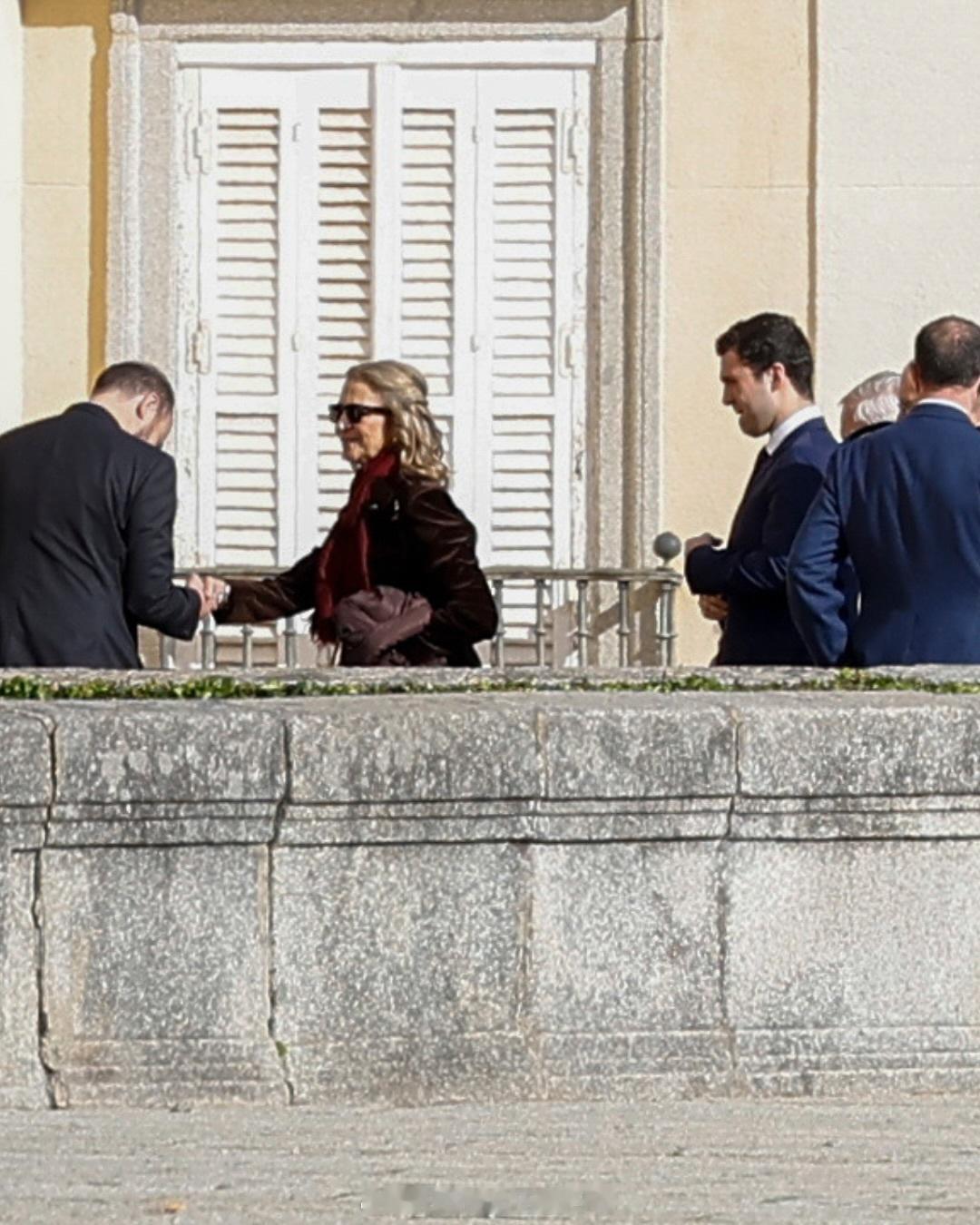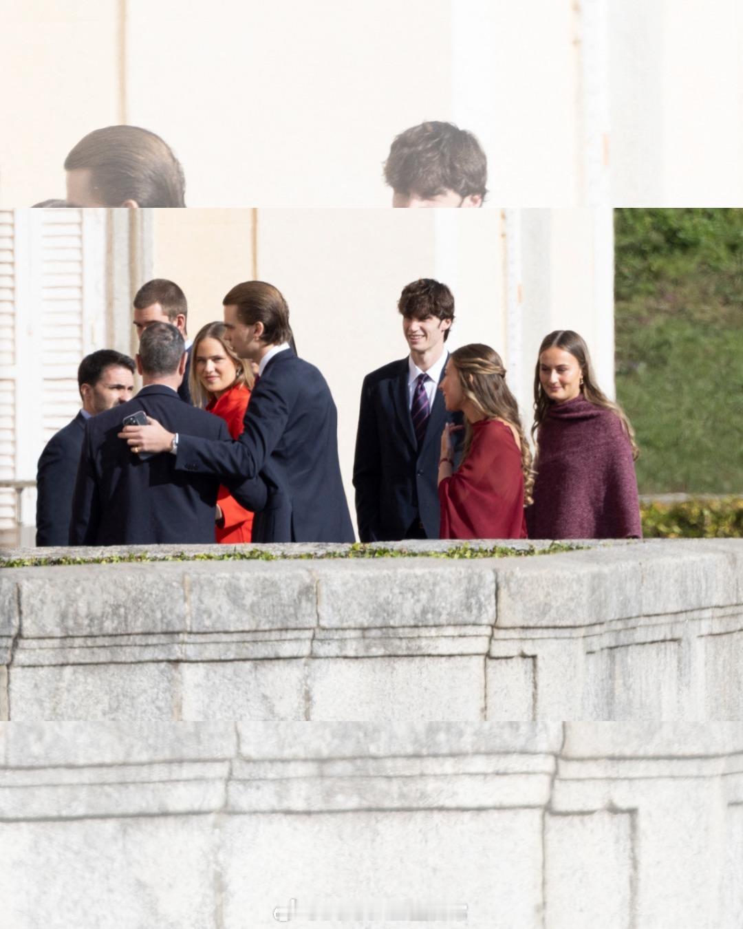 11月21日,西班牙王室成员、家庭成员及希腊家亲戚出席在埃尔帕多皇宫举行的纪念西班牙恢复君主制50周年午宴。巴勃罗和米格尔都带着女票来了,难得看到大家聚在一起,胡安·卡洛斯想拍大合照的愿望能实现了