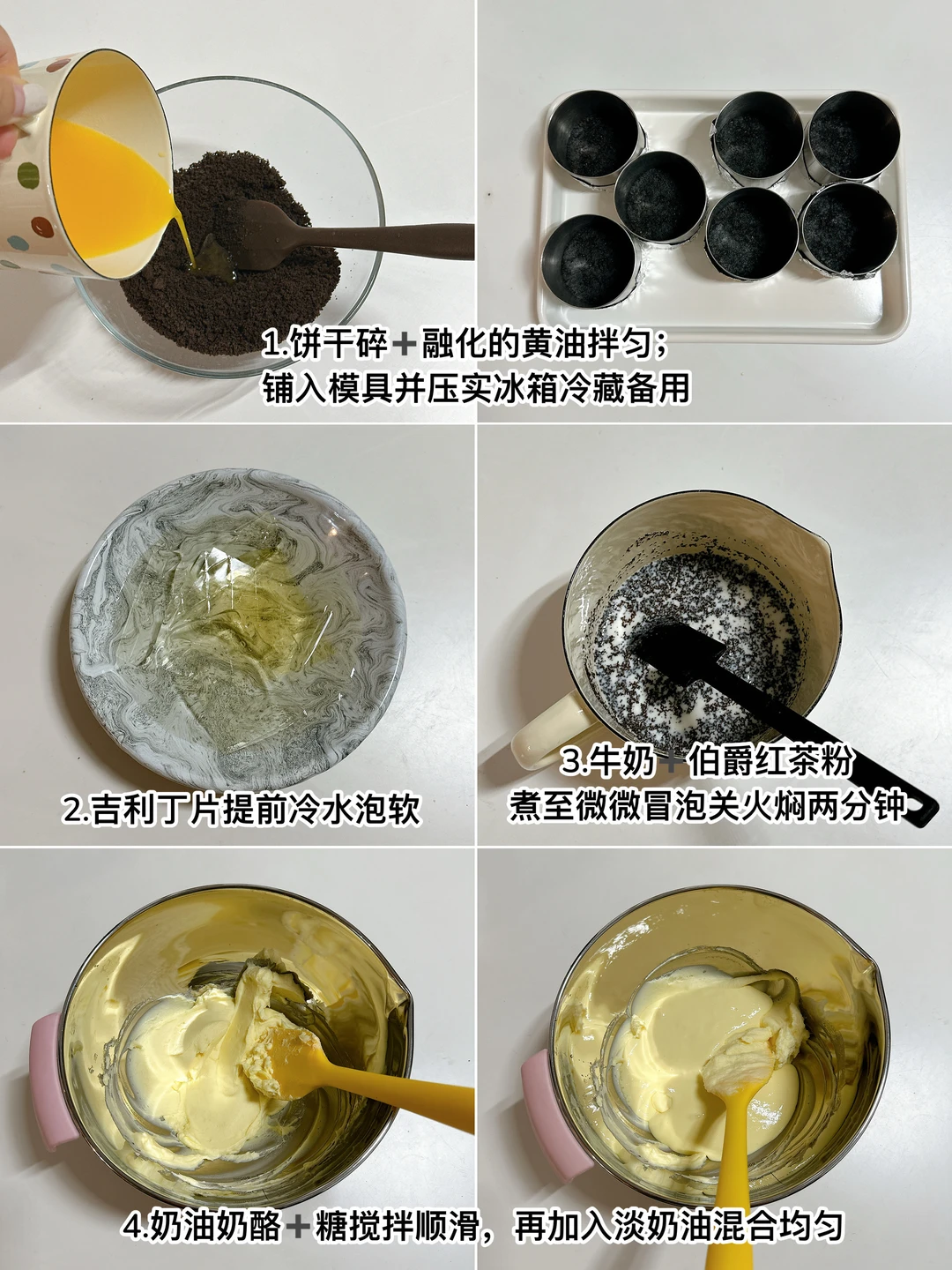 慕斯:奶油奶酪220g|淡奶油220g|糖60g|热牛奶50g|伯爵红茶粉1包(2g)|吉利丁片8g|
