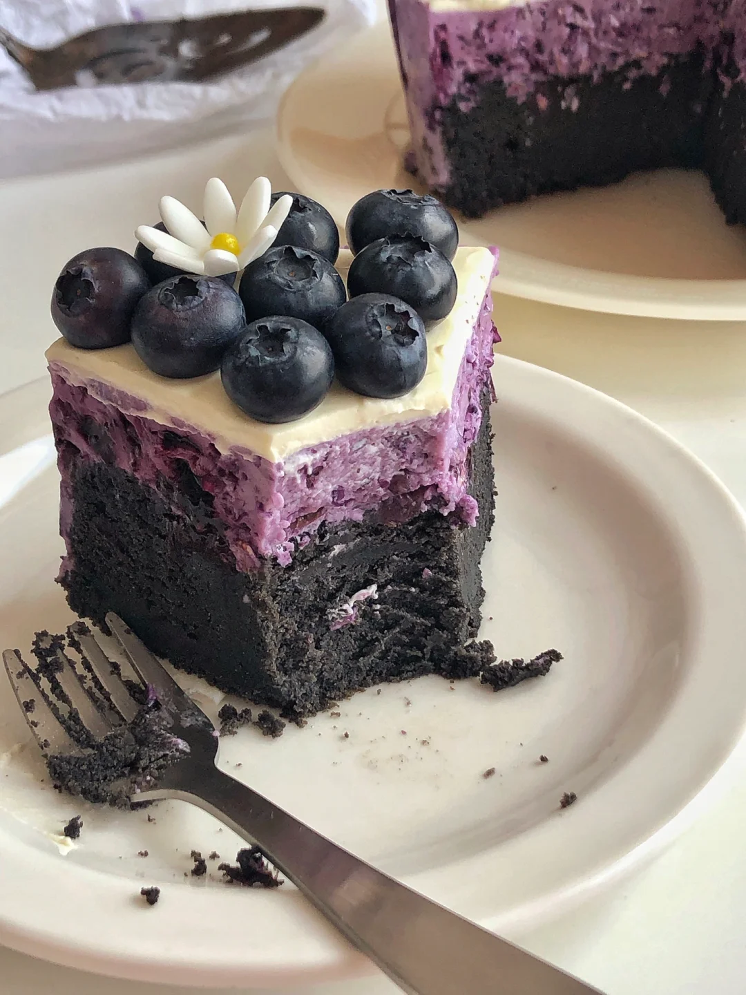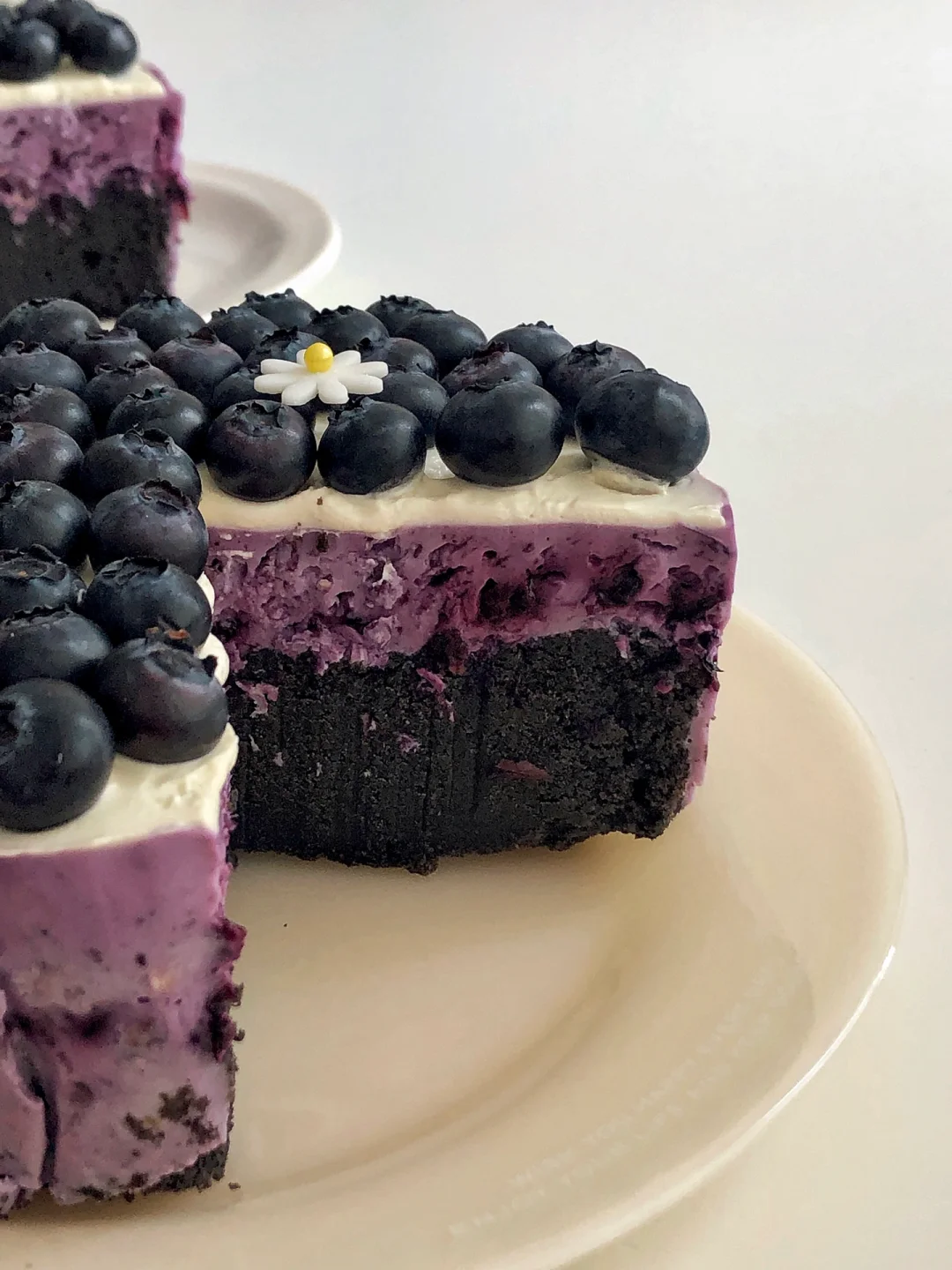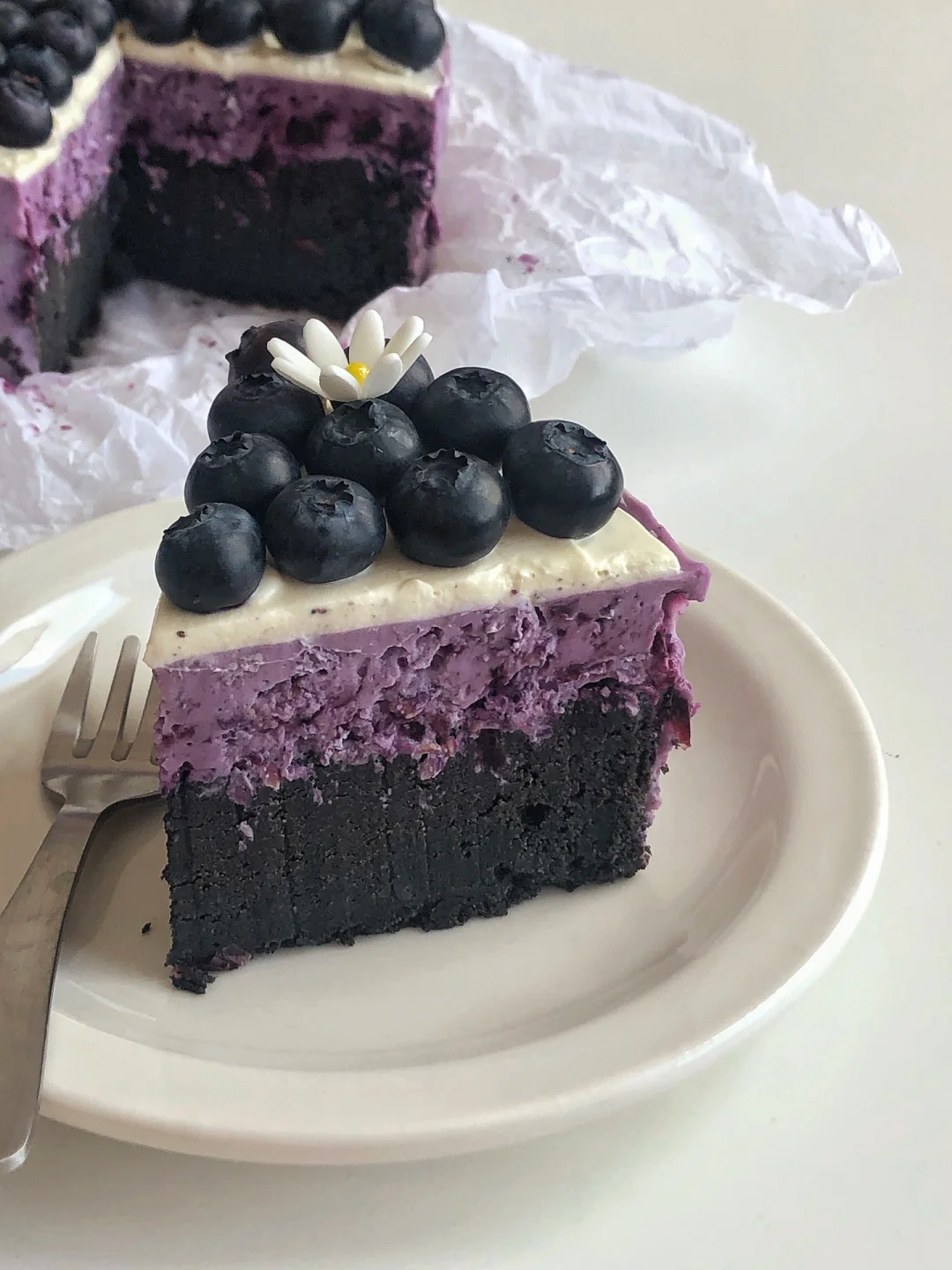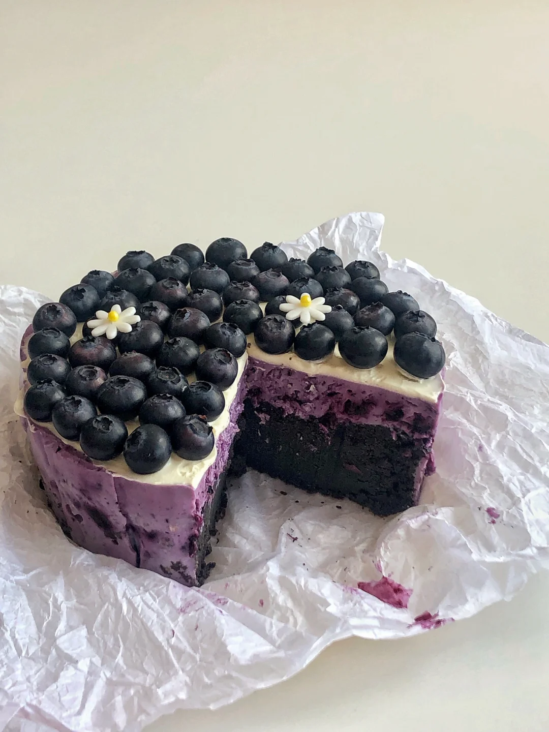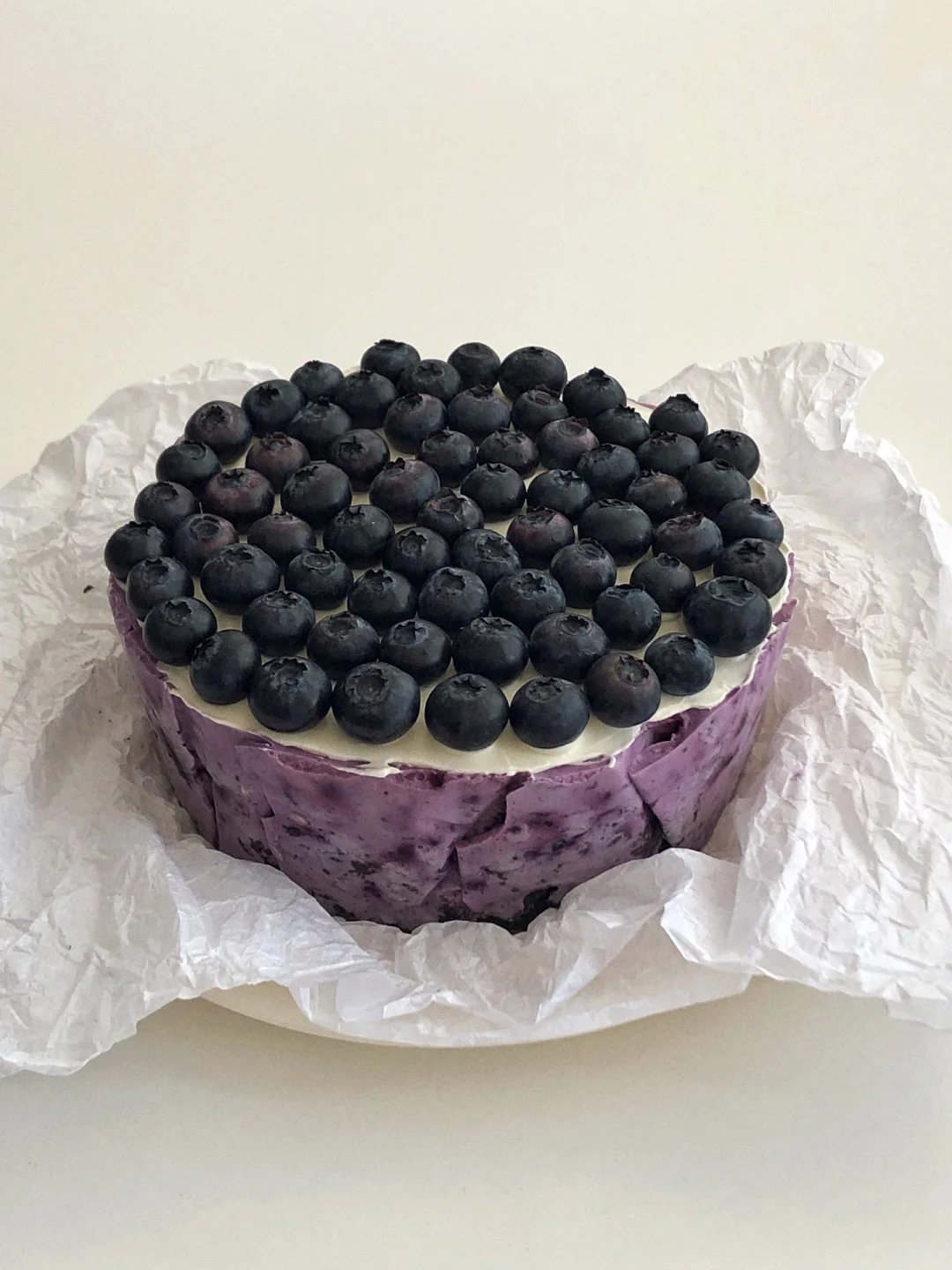 7.脱模后顶部抹酸奶,摆上蓝莓即可