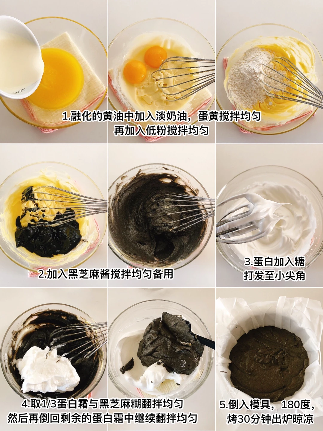 融化的黄油60g|淡奶油80g|🐔蛋2个|黑芝麻酱80g|低粉30g|糖30g