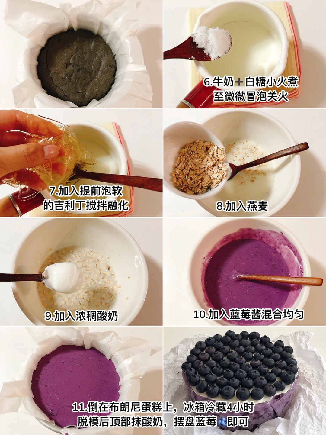 牛奶100g|糖 30g|浓稠酸奶150g|吉利丁8g|燕麦30g|蓝莓酱120g