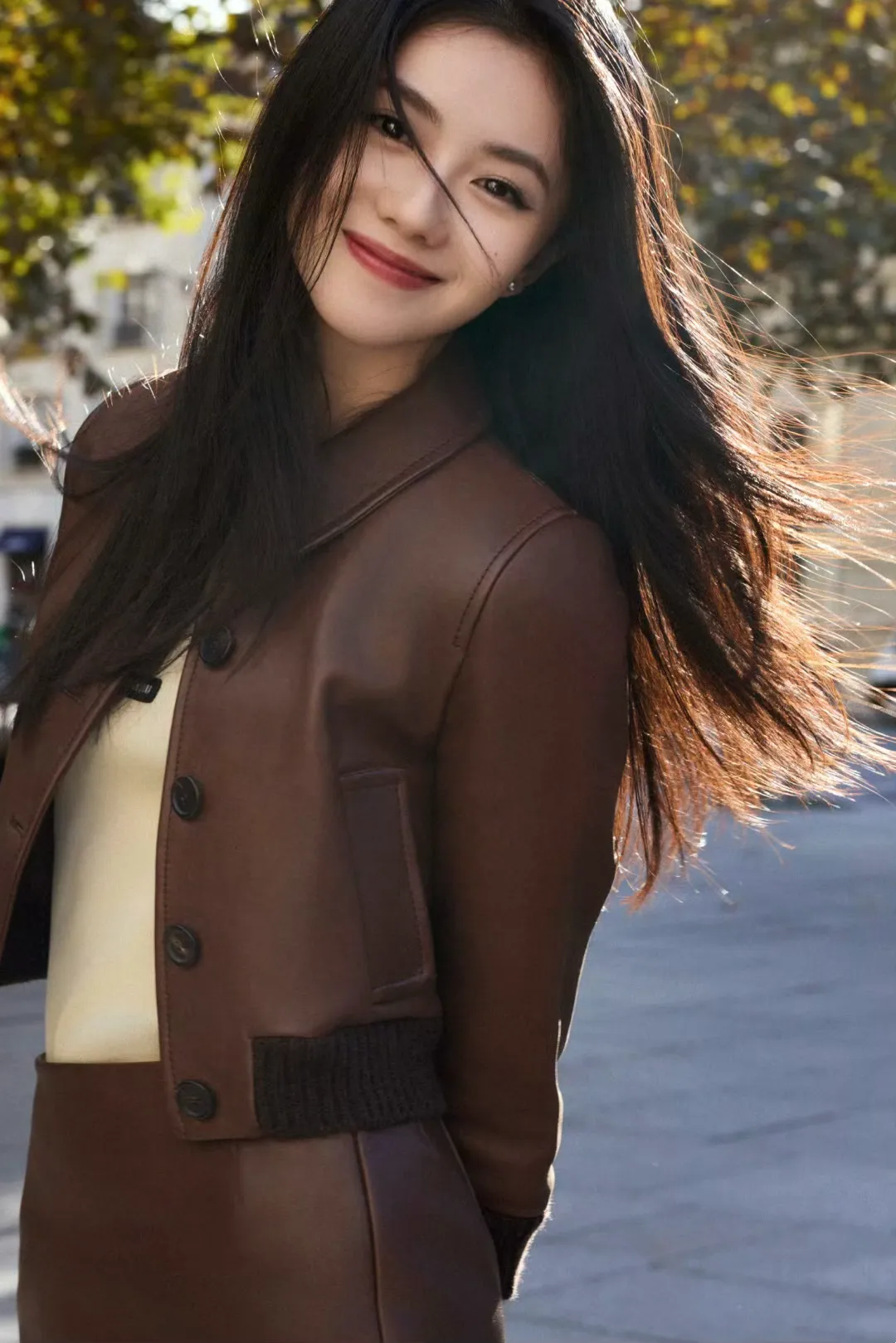 刘浩存小皮裙造型写真 刘浩存身穿棕色小皮裙套装搭配高筒皮靴,手拿小香包,一头飘逸的乌黑秀发直披肩头,阳光灿烂的笑容充满青春活力,修长美腿性感十足,又美又飒的小姐姐谁能不心动呢!