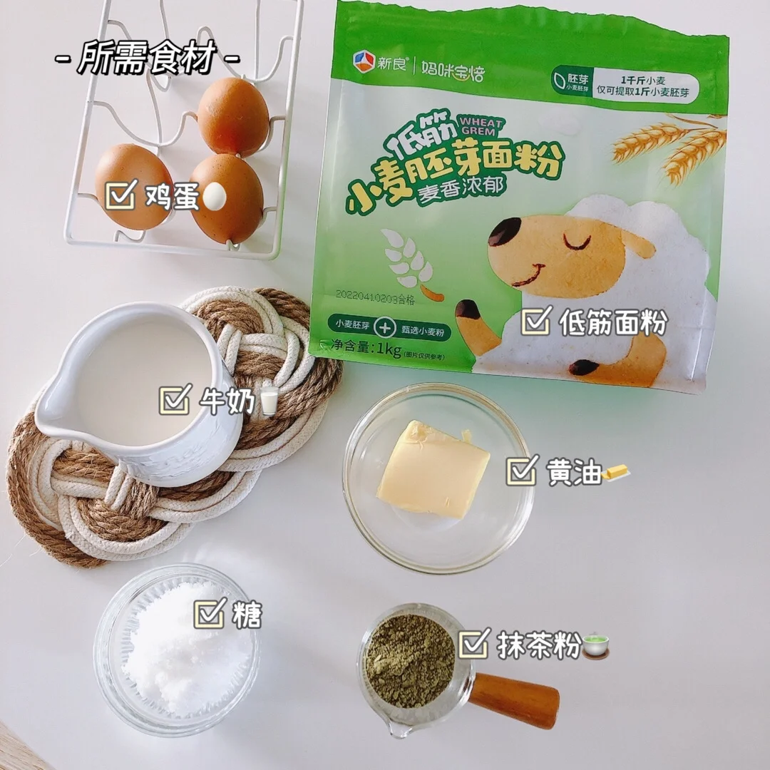 糖 45g|低筋面粉 95g|抹茶粉 5g