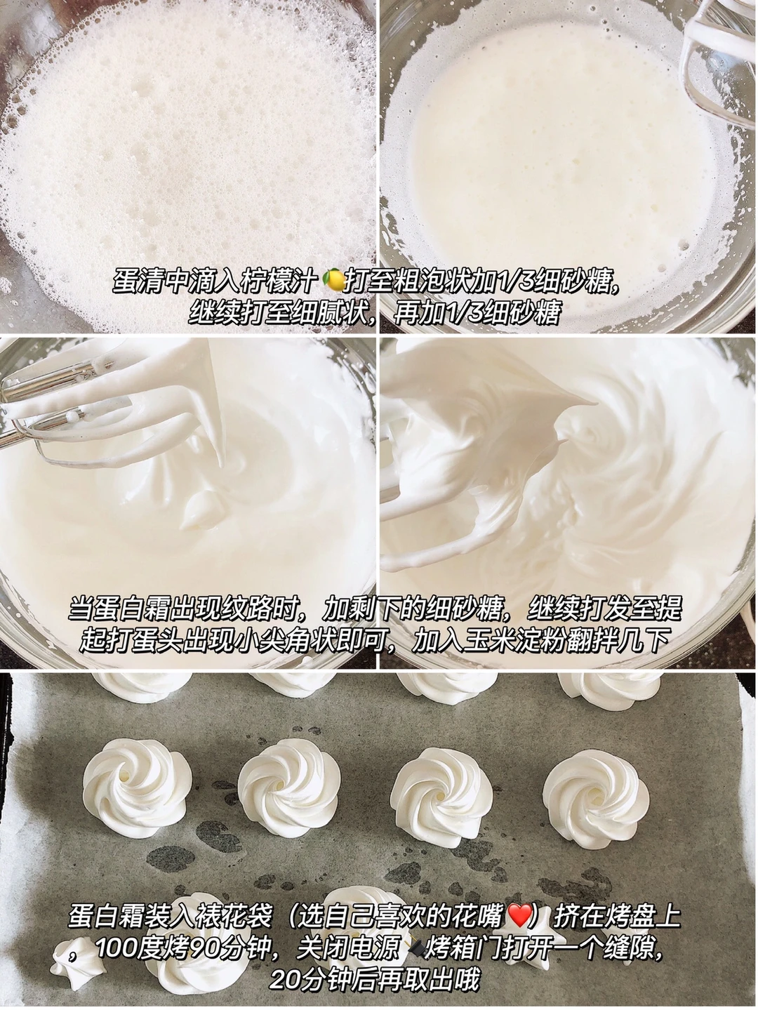 蛋清2个|细砂糖30g|玉米淀粉6g|柠檬汁几滴