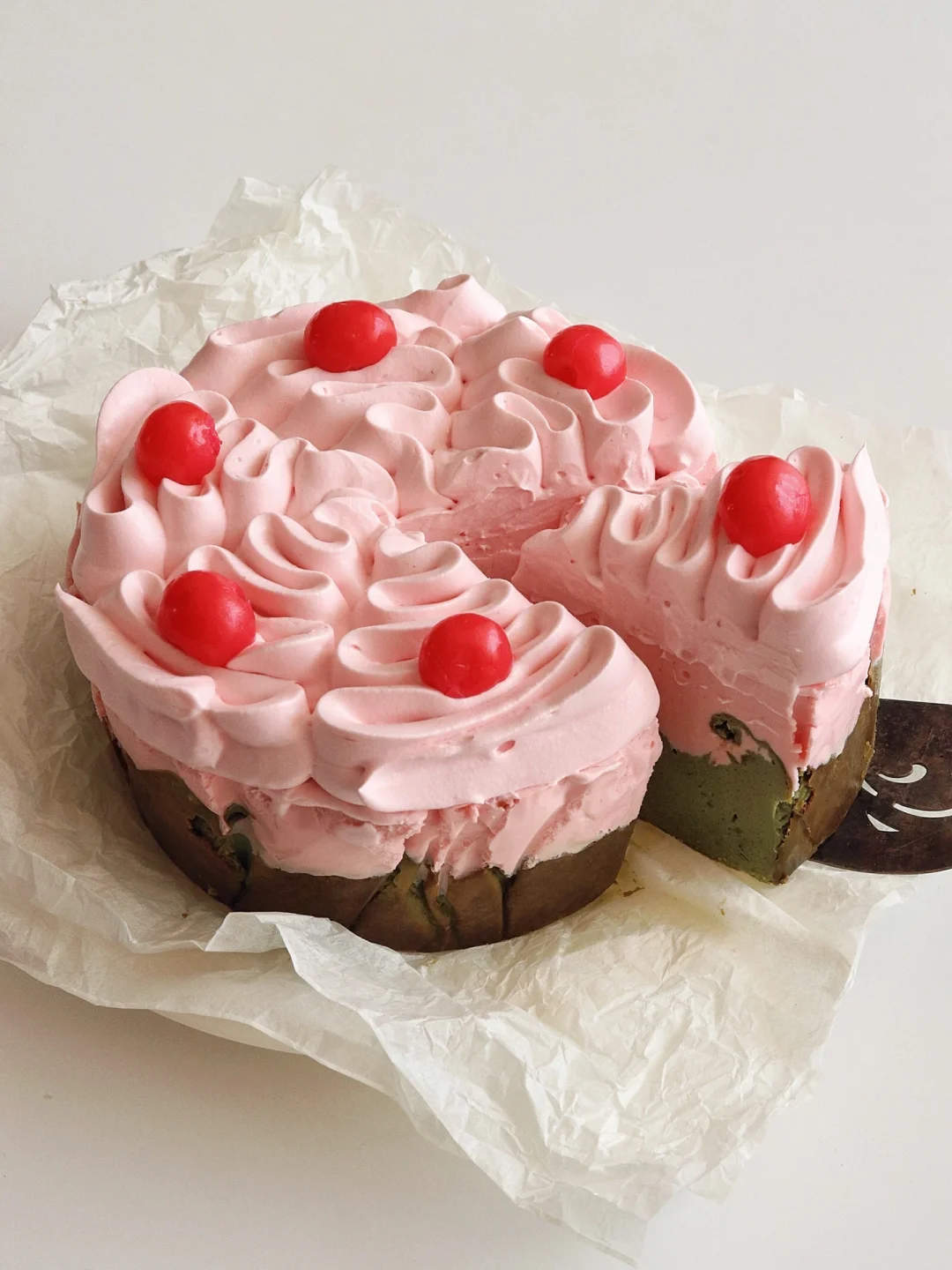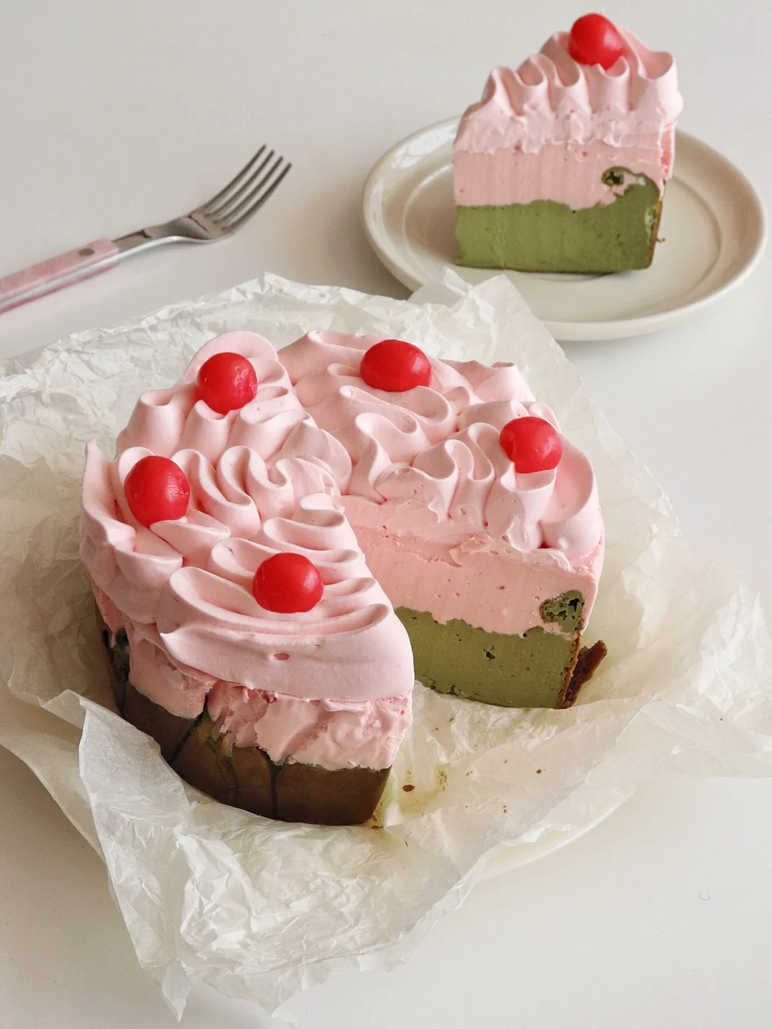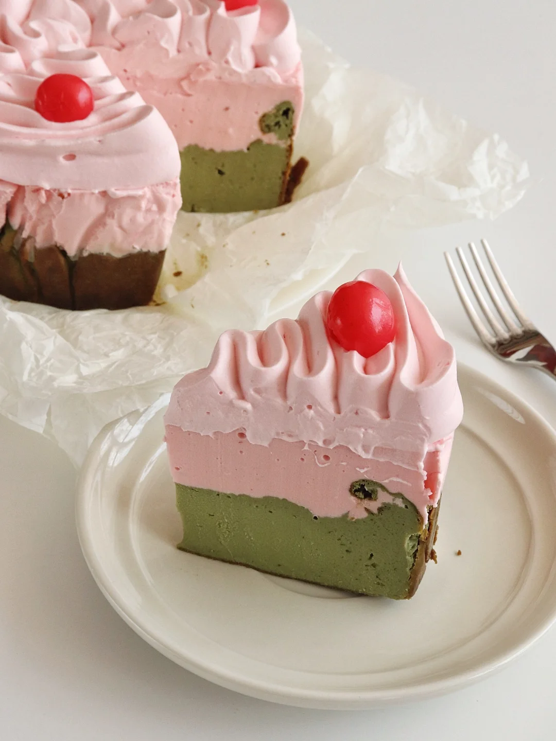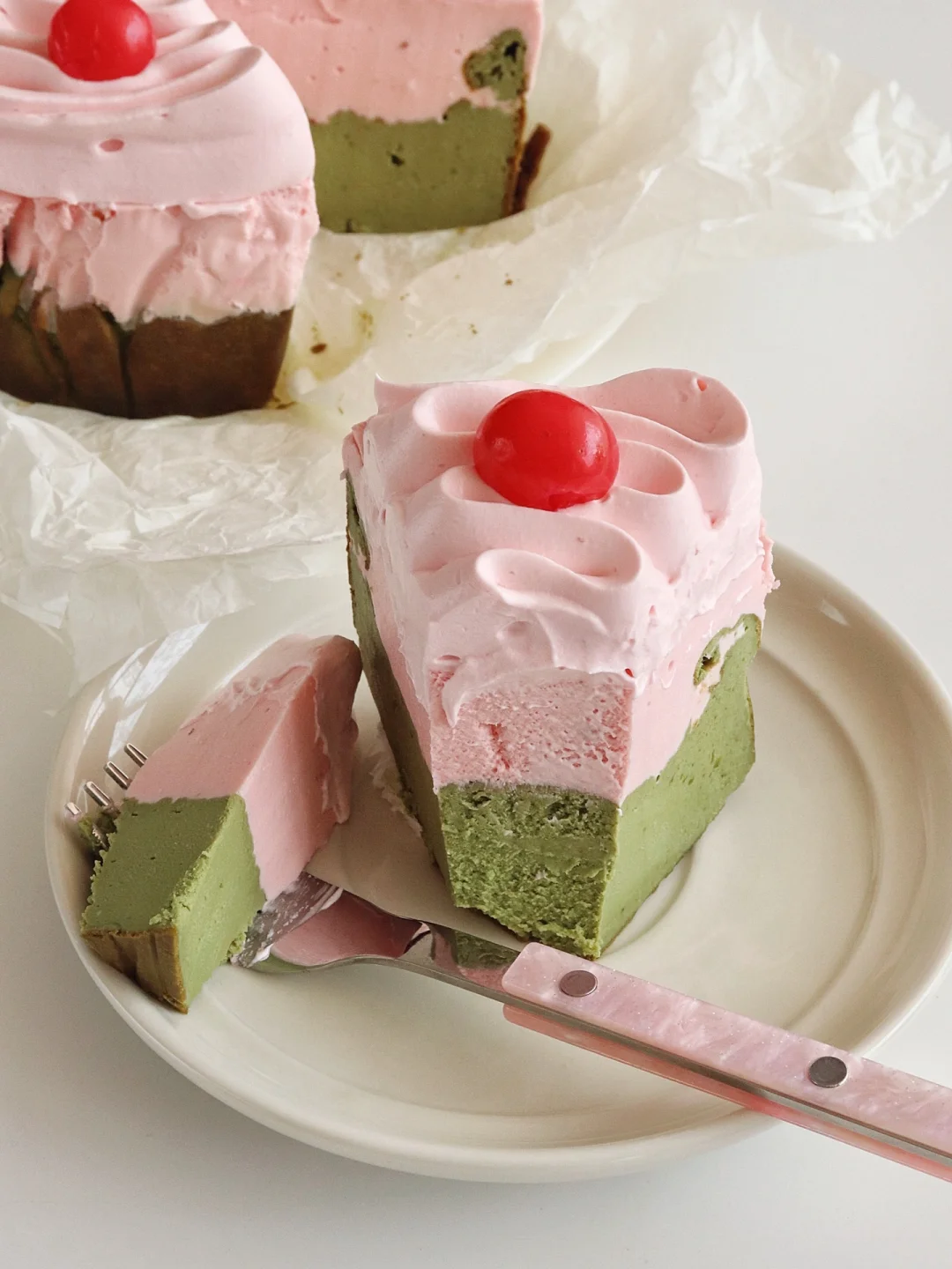 清新的抹茶和酸甜的草莓慕斯