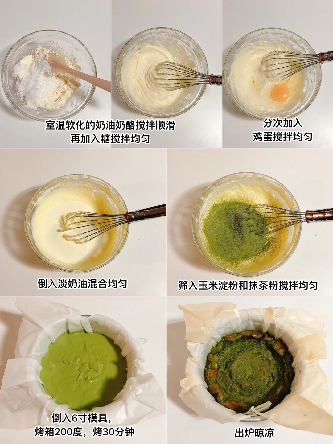 奶油奶酪250g|鸡蛋2个|淡奶油160g|糖55g|玉米淀粉10g|抹茶粉15g
