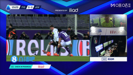 第13分钟,弗拉霍维奇禁区左路脚后跟过人被马里放倒,裁判判罚点球,随后经过var回放认定没有点球。↓
