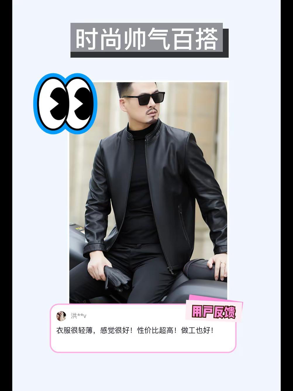 这款皮衣太帅气啦~😎✨。这款海宁男士皮衣夹克外套真是时尚的必备单品!无论是商务洽谈还是休闲出行,翻领设计增添了几分帅气与优雅。真皮材质手感极佳,穿上它让你瞬间提升气场,百搭的黑色让搭配变得轻松自在。无论搭配衬衫还是T恤,都能展现你独特的魅力,是秋冬季节的理想选择,快来体验吧!朱朝瑛 朱春路