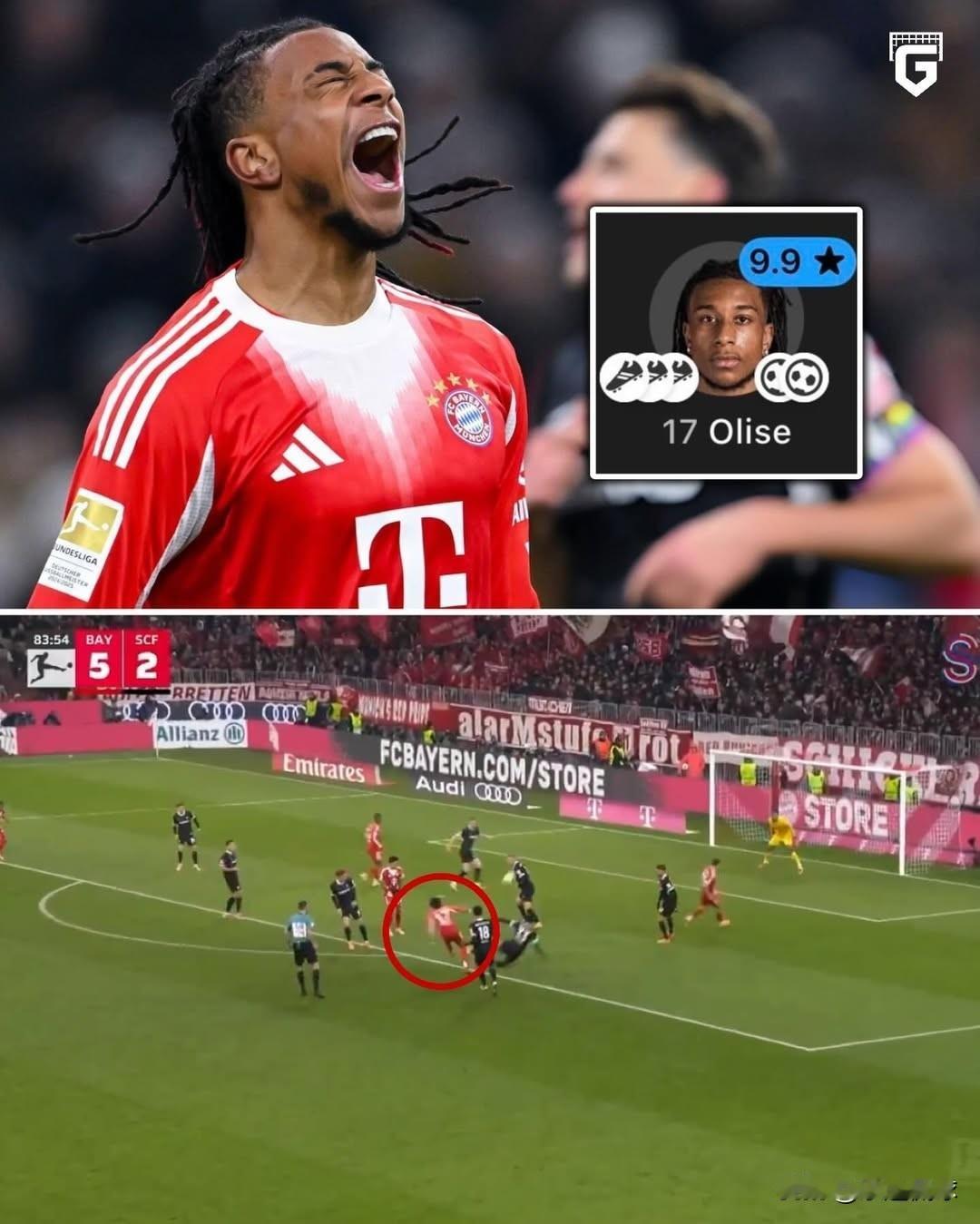 奥利塞这样的表现居然还拿不到10分的评分?那10分的评分应该是什么样的? 德甲第11轮神仙战!拜仁主场0-2落后绝境翻盘,6-2狂胜弗赖堡,23岁妖星奥利塞直接杀疯了!2球3助+92%传球成功率!带拜仁6-2大逆转,创德甲最年轻纪录。 首发出战90分钟的他,狂轰2球+3次助攻独造5球,成为2004-05赛季有统计以来,拜仁德甲单场参与5球最年轻的球员(23岁345天)!8次射门3次射正斩获2球,6次盘带5次成功,92%传球成功率+6次关键传球,攻防两端全拉满,妥妥的全场大腿! 要知道拜仁开局就被对手连灌2球,正是奥利塞站出来接连破门+喂饼,带领球队连追6球完成史诗级逆转。这数据、这带队能力,不给10分真说不过去!