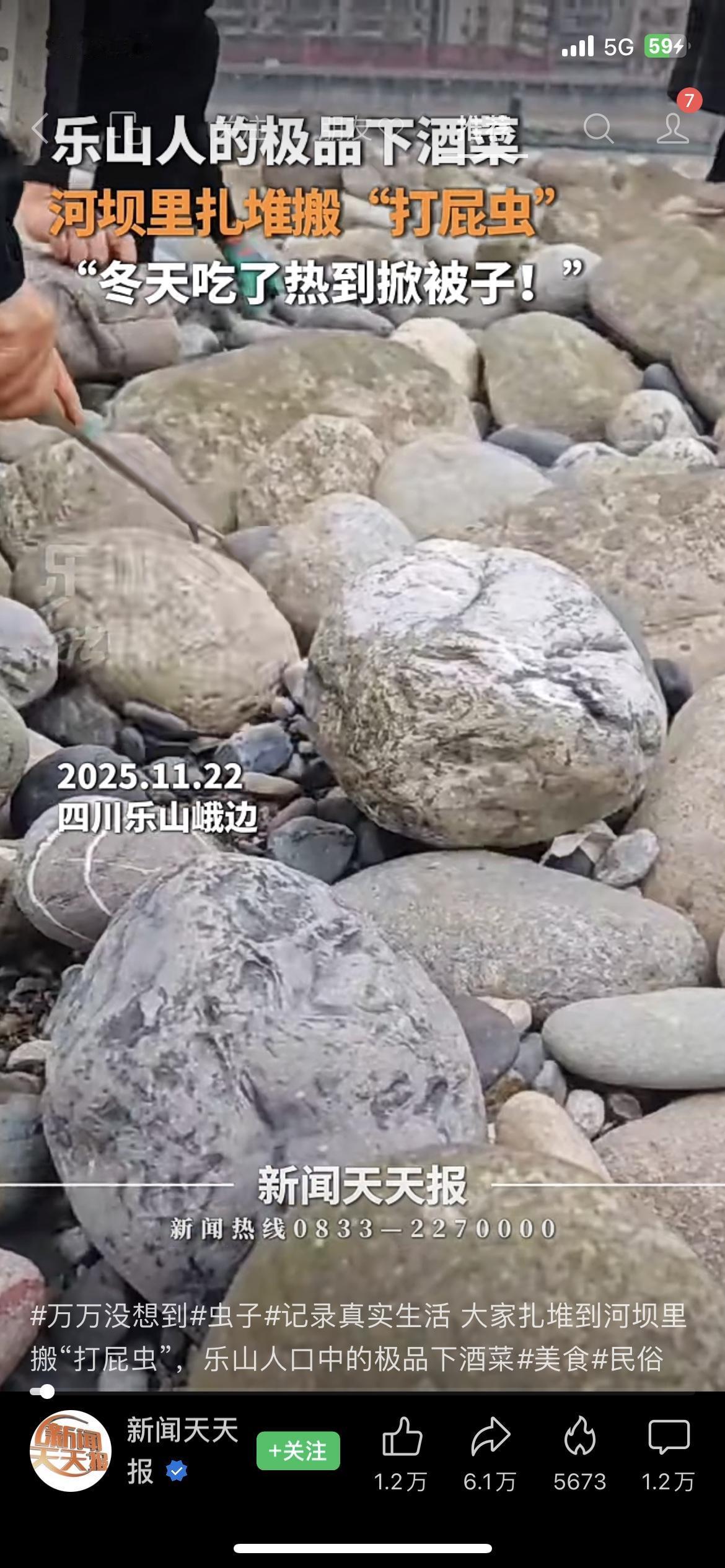 乐山人这波操作太会了!河坝里搬“打屁虫”,500块一斤还抢着挖? 最近乐山的河坝里全是搬石头的人,不是找宝贝,是挖“打屁虫”——这玩意儿在乐山人口中是极品下酒菜,现在都炒到500块一斤了! 有人说“工作压力大的时候搬开石头,看到虫子的瞬间压力全没了”,既能解压还能赚外快,这好事哪儿找? 你们那儿有这种“奇怪又美味”的特色小吃吗?敢不敢试试这500一斤的下酒菜? 乐山美食 打屁虫 特色小吃收购打屁虫