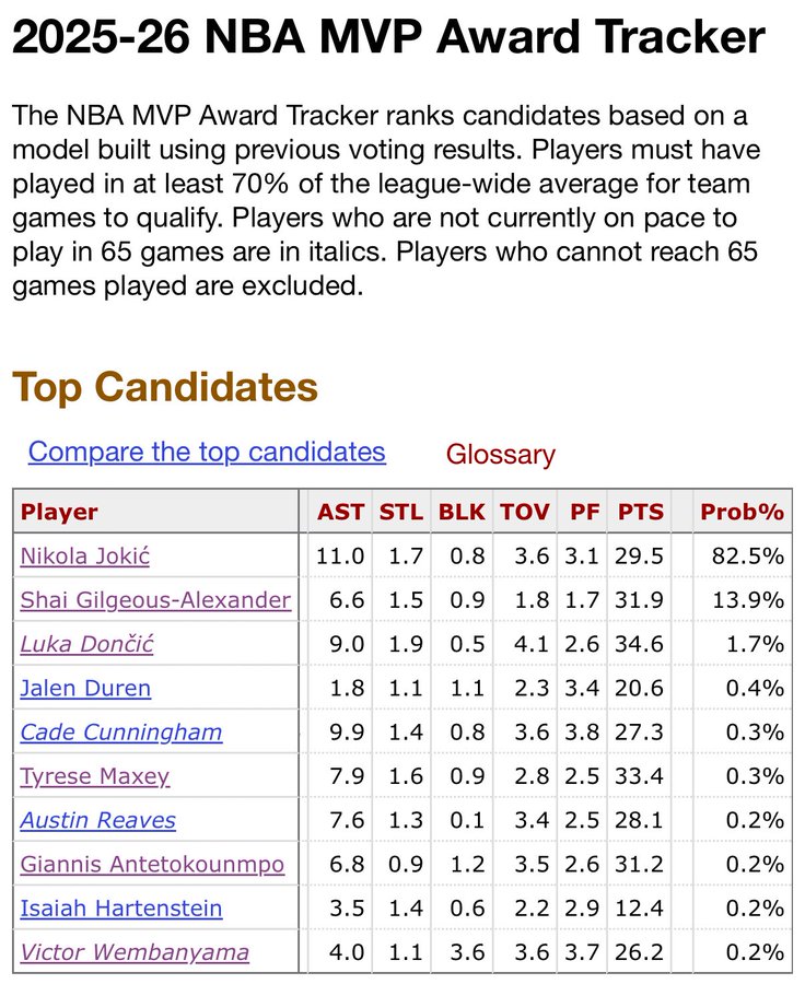 虎扑11月23日讯数据网站BBR最新的MVP概率出炉,掘金中锋约基奇以82.5%的概率,断档领先。
