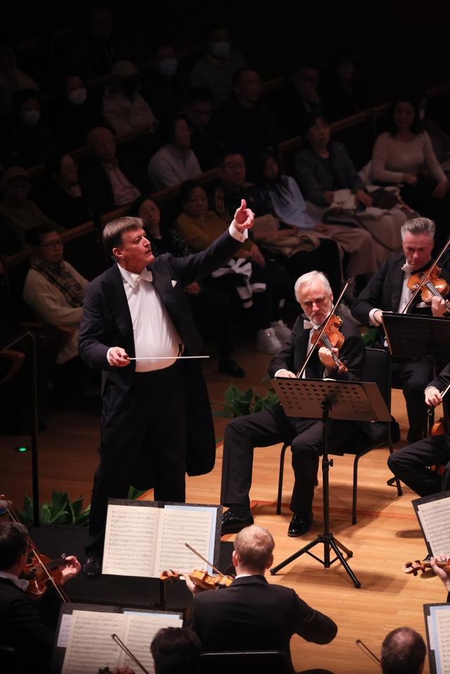 音乐会正式开始,一袭黑色礼服的蒂勒曼昂首伫立,周身散发着与乐团结缘25年的默契气场。作为两度执棒维也纳新年音乐会、2024年被授予乐团荣誉会员称号的指挥大师,蒂勒曼与维也纳爱乐的组合,被视作演绎德奥经典的“黄金搭档”。这份跨越四分之一个世纪的合作情谊,化作精准细腻的指挥手势与乐团丝丝入扣的演奏呼应,让每一个音符都饱含质感与温度。