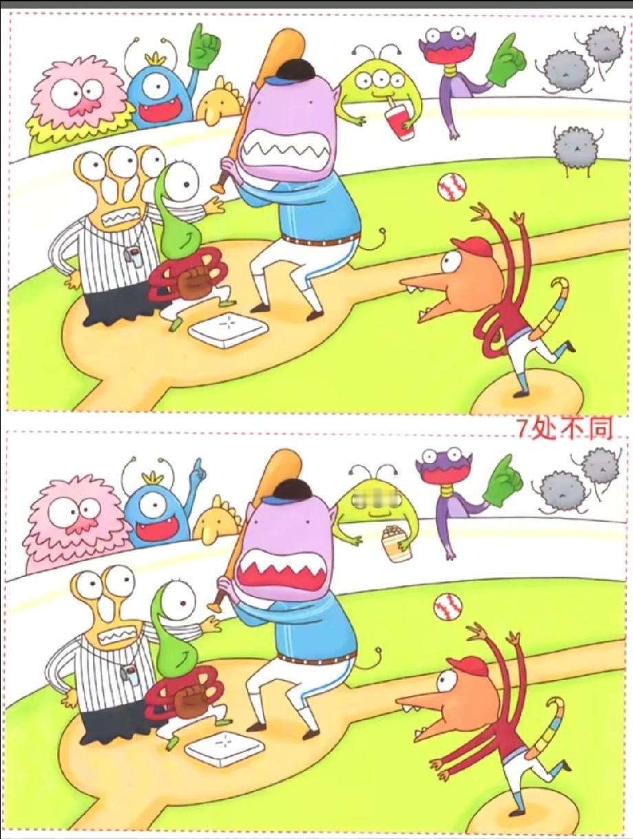 这找茬图太烧眼!7处不同藏得比针还细,我找了5分钟才发现3处,你呢?