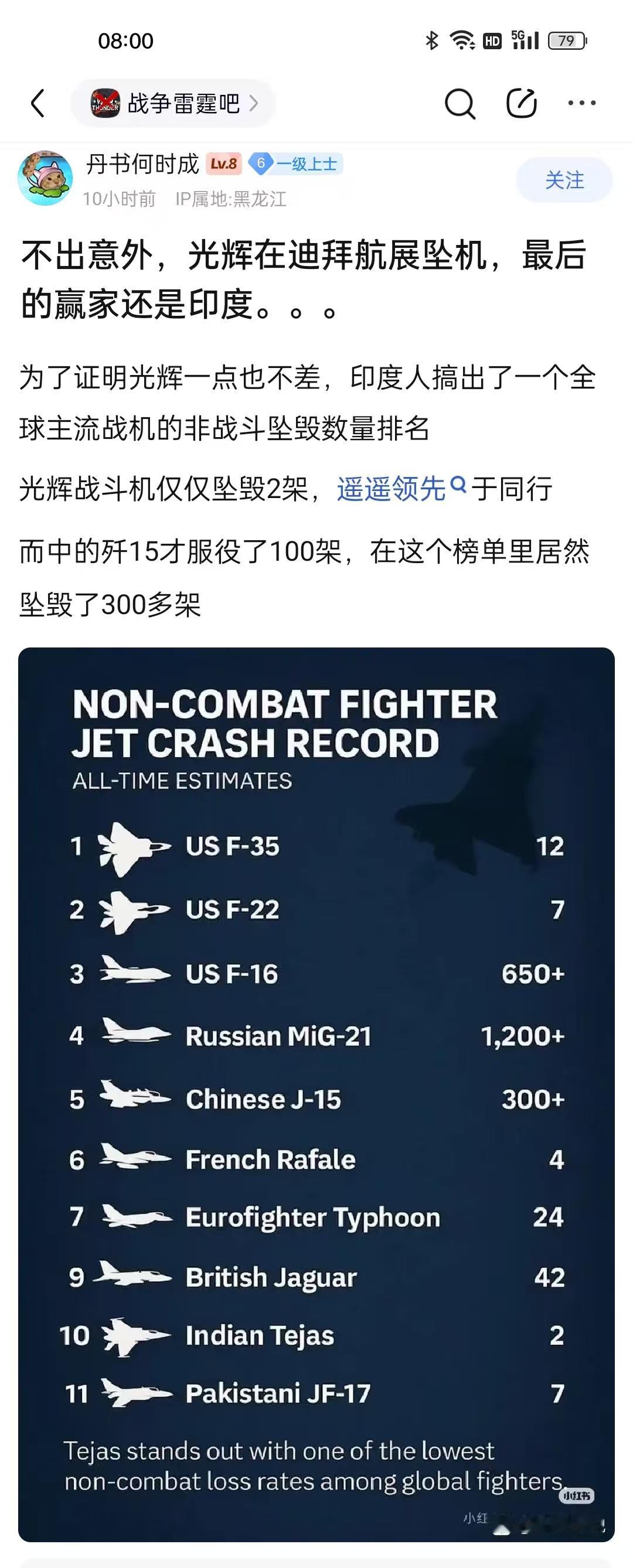 印度赢学又来了!搞个全球坠毁战机排行,造谣歼15掉300+,枭龙掉17,这tm也是没谁了!要点脸吗? 关键这太离谱了,我们也没有300架歼15,或者说印度就不认识我们歼15飞机,纯粹就是玩个数字,根据相关数据看歼15不到100架,丢人丢到航展的光辉这是又给印度长脸了吗?